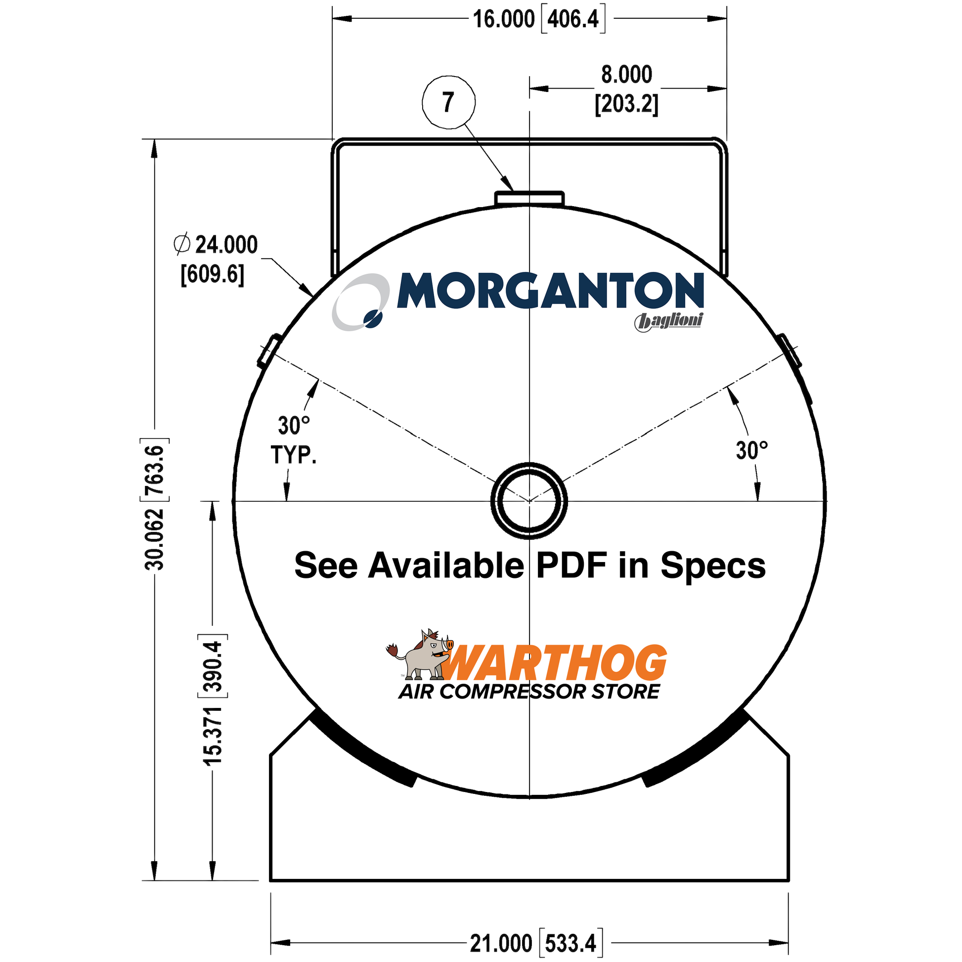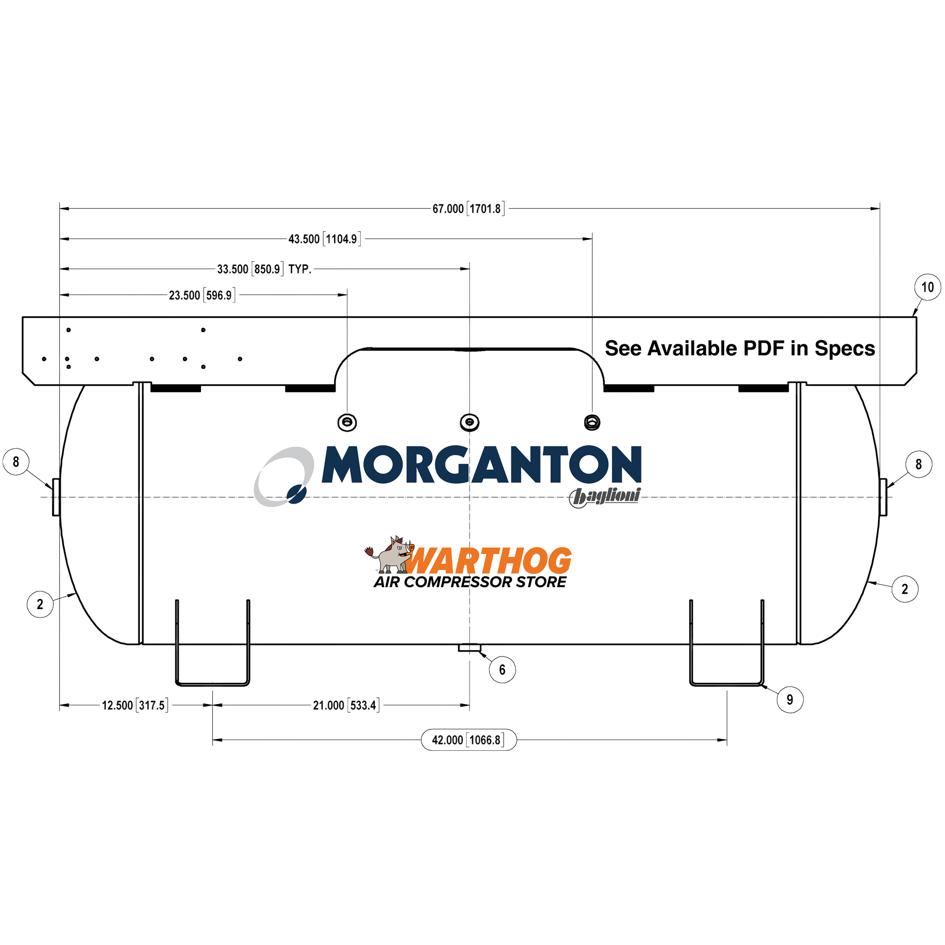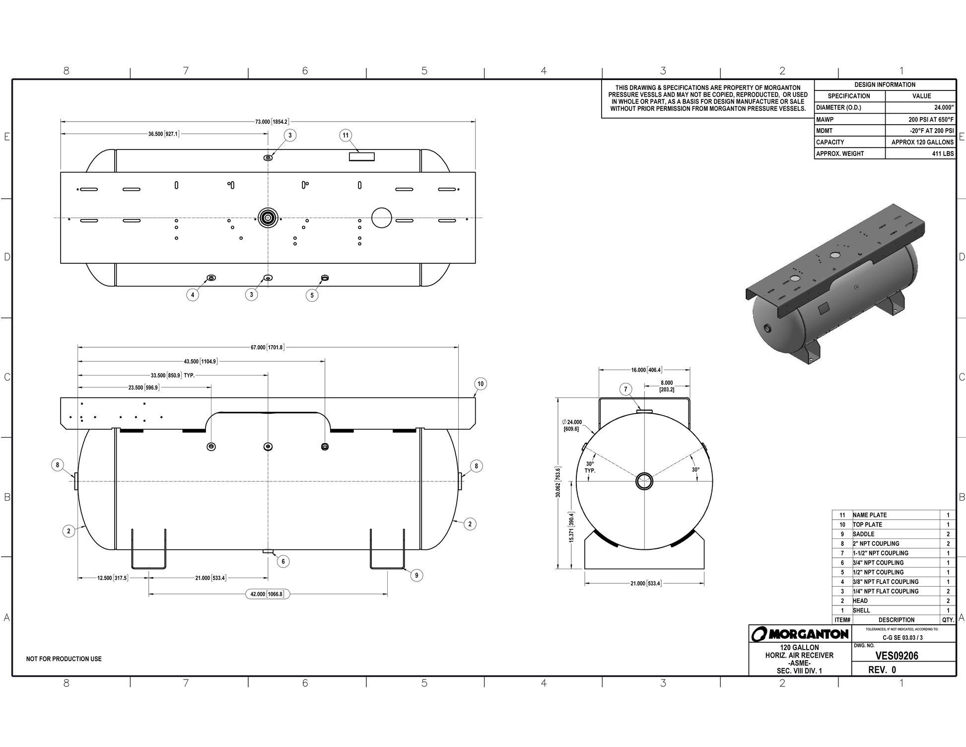 120 Gallon 200 PSI Horizontal Air Tank with Saddle+Extended Top plate by Morganton | VES09206