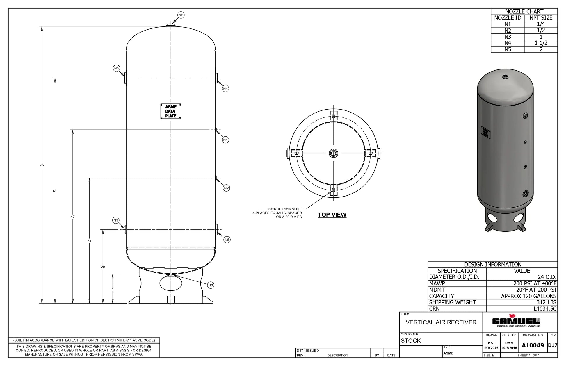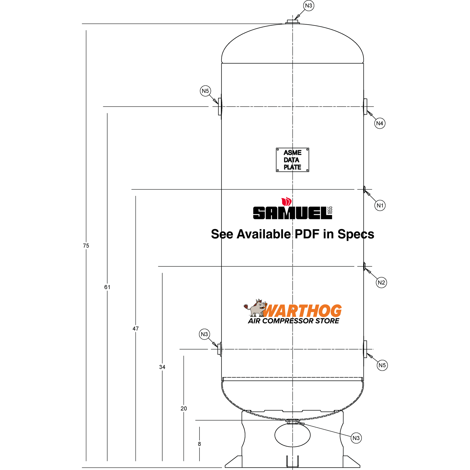 120 Gallon 200PSI Vertical Air Tank By Samuel with 8" base ring | A10049