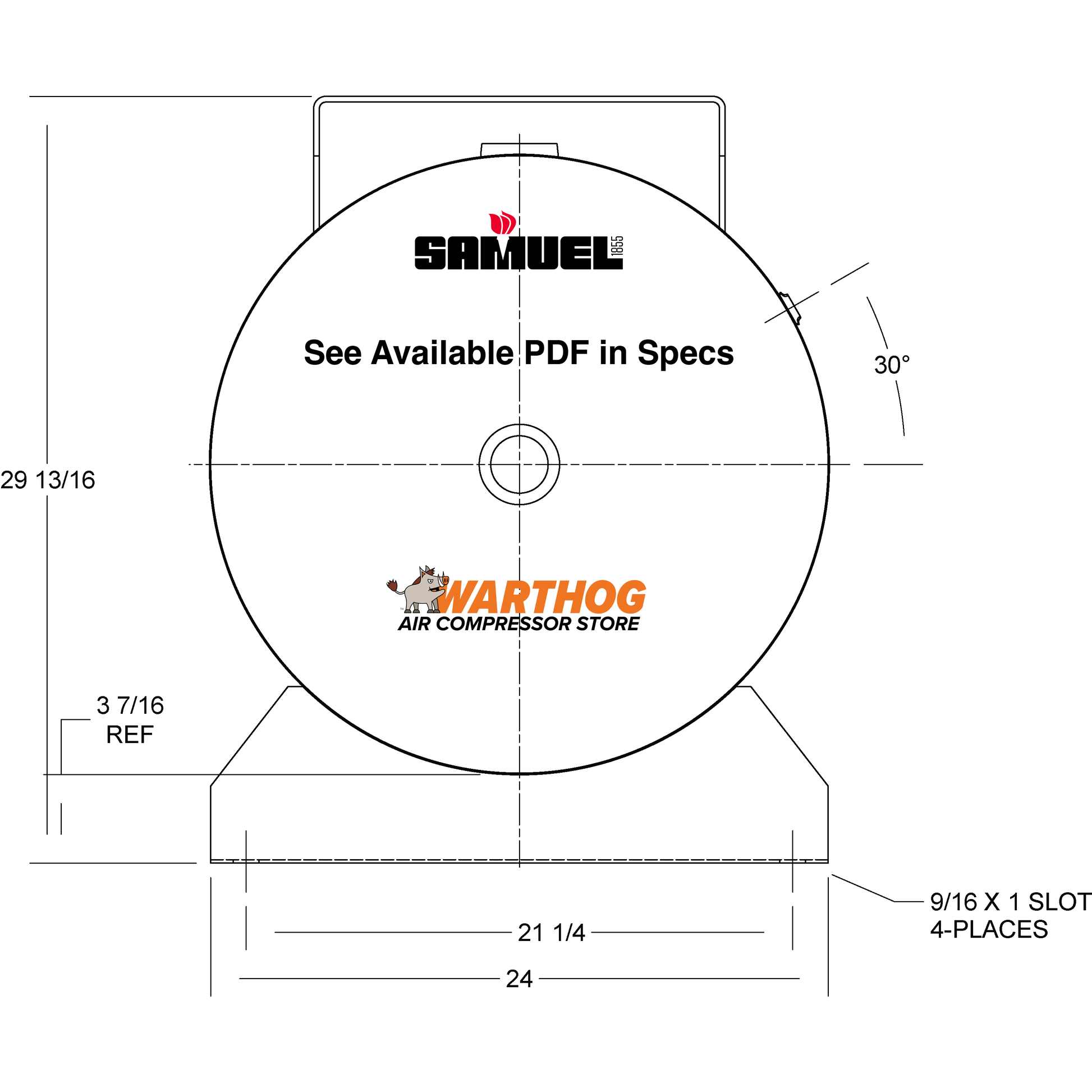 120 Gallon 200PSI Horizontal Air Tank By Samuel with Saddle legs, 16"X74" extended top plate