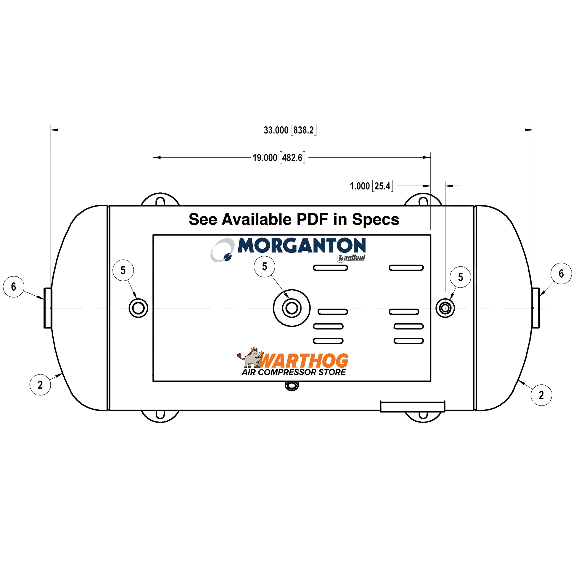 20 Gallon 200 PSI Horizontal Air Tank with Feet+top plate by Morganton | VES04771