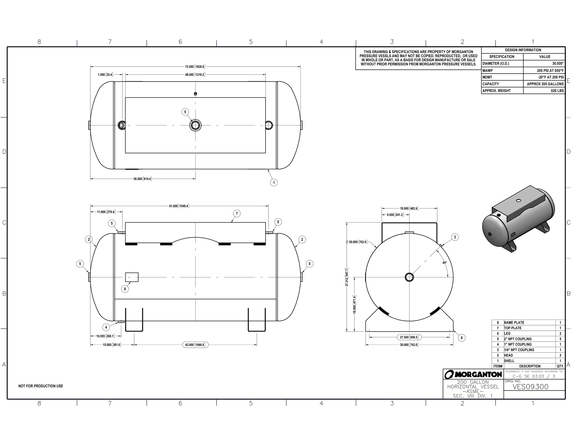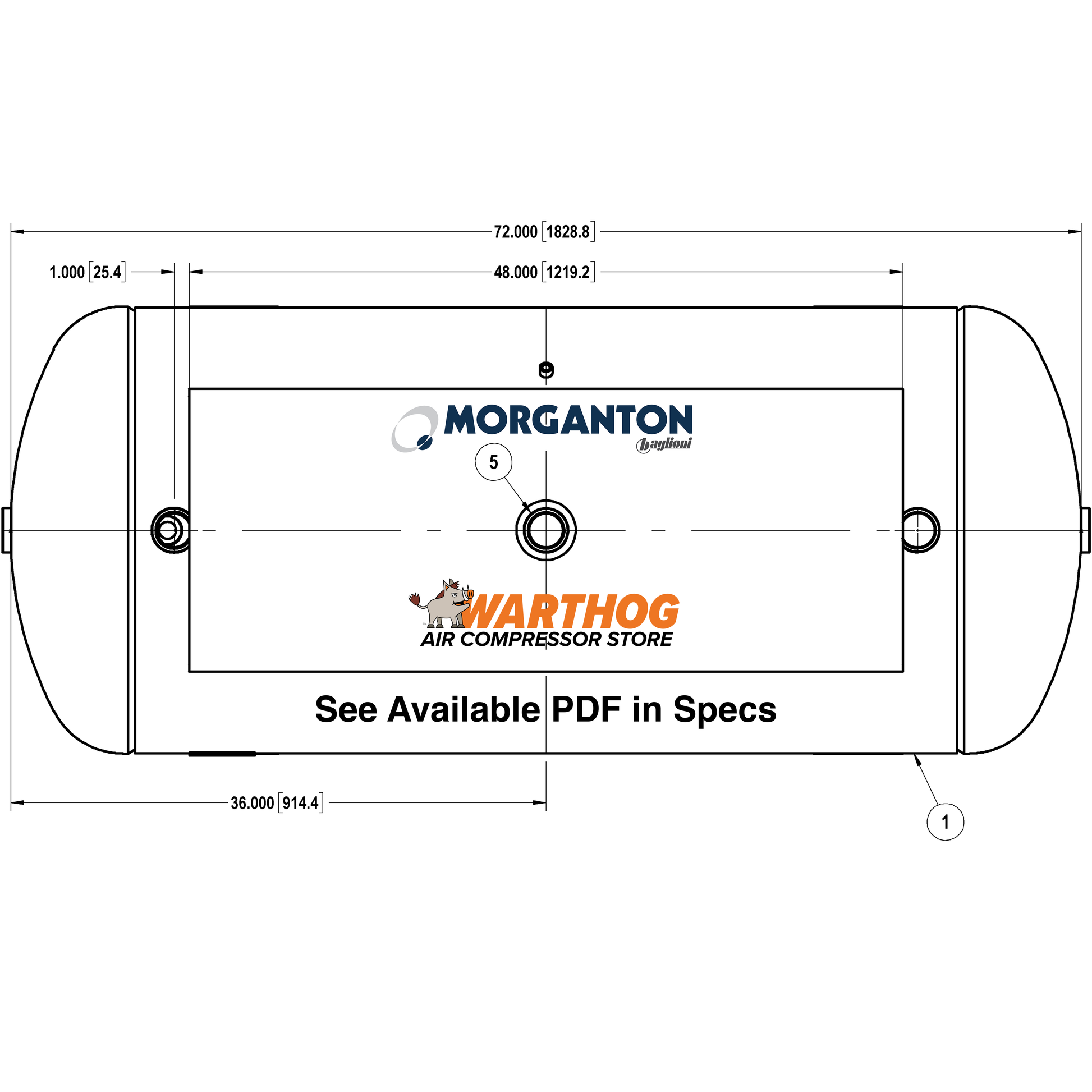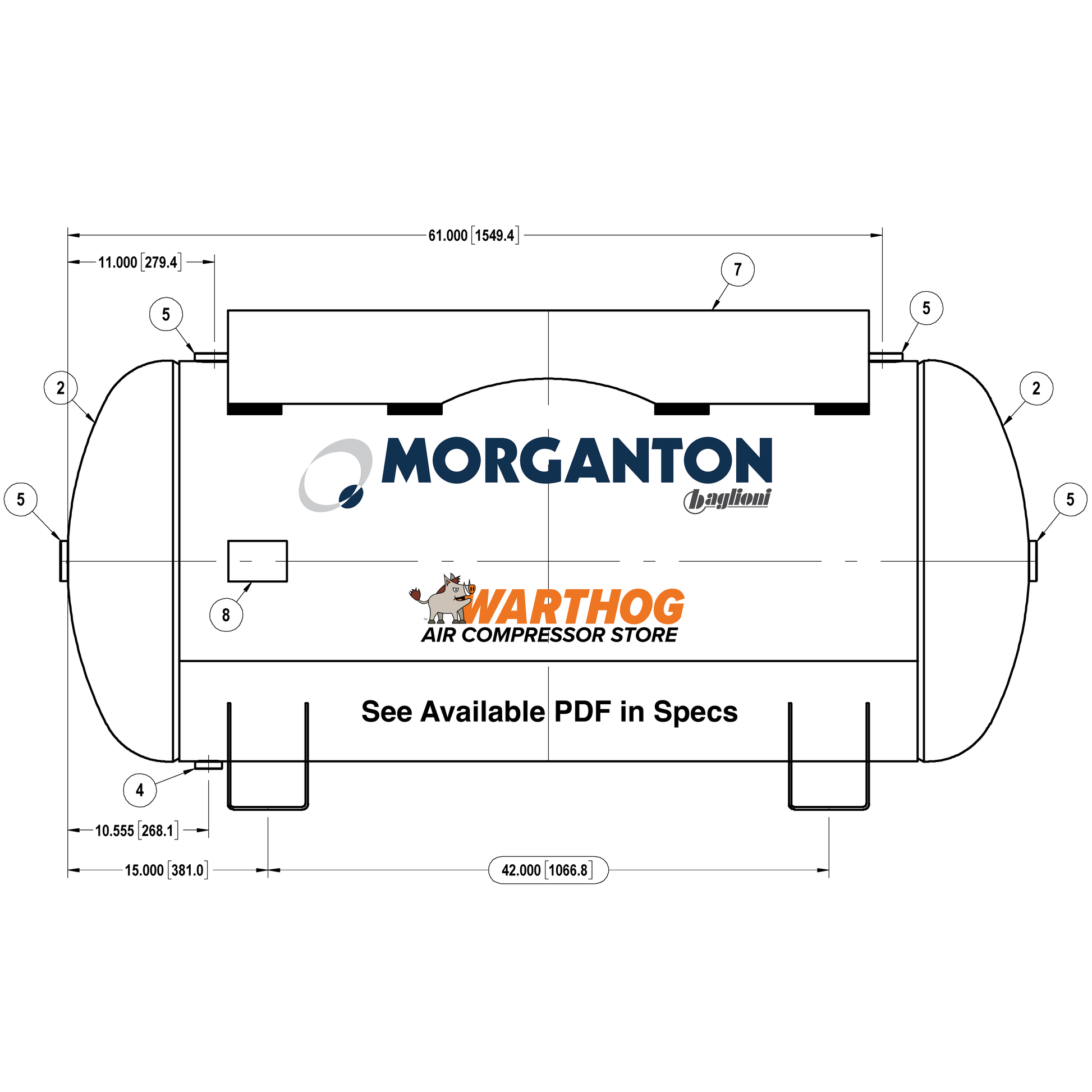 200 Gallon 200 PSI Horizontal Air Tank with Saddle+Top plate by Morganton | VES09300