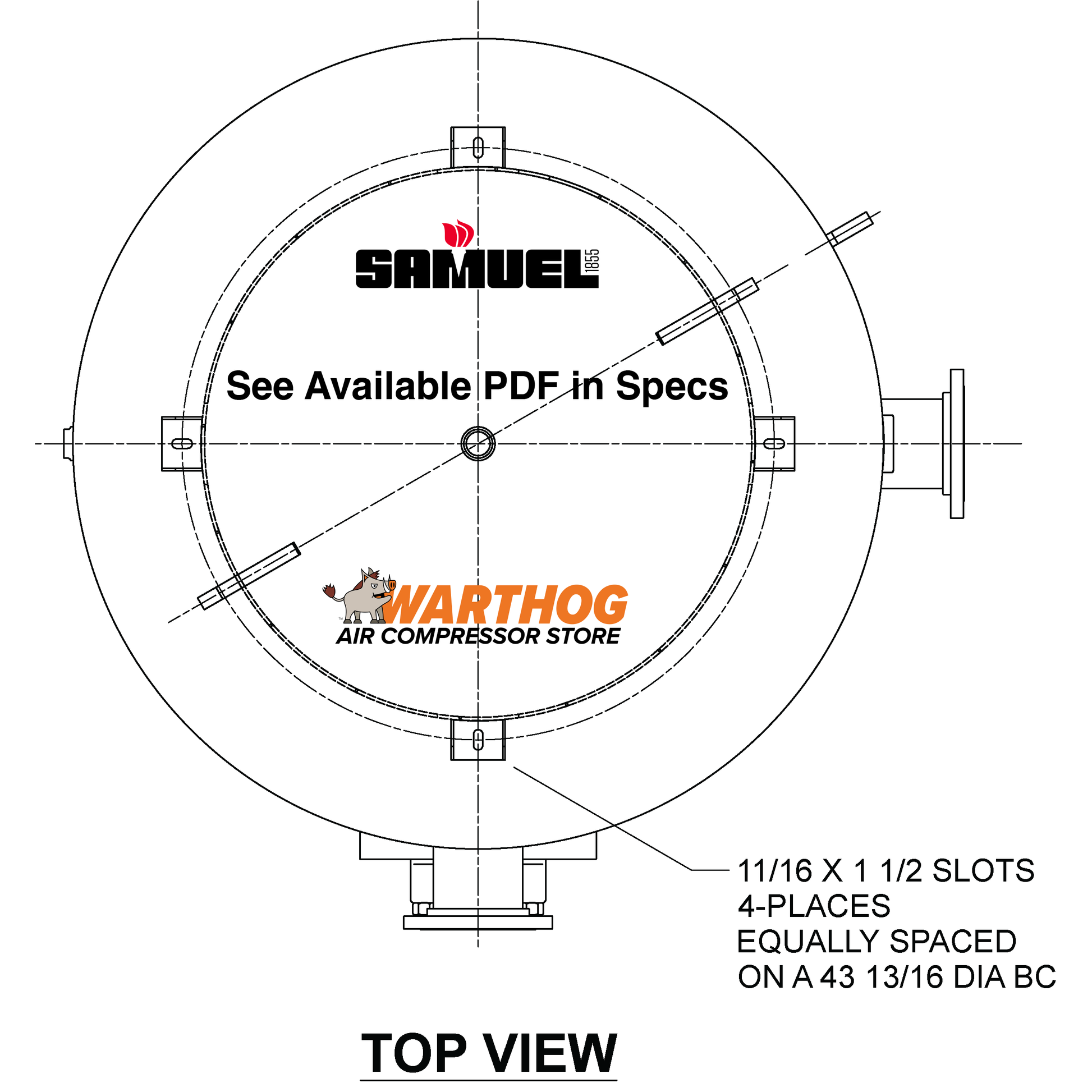 2000 Gallon 150PSI Vertical Air Tank By Samuel with 8" base ring | A10333
