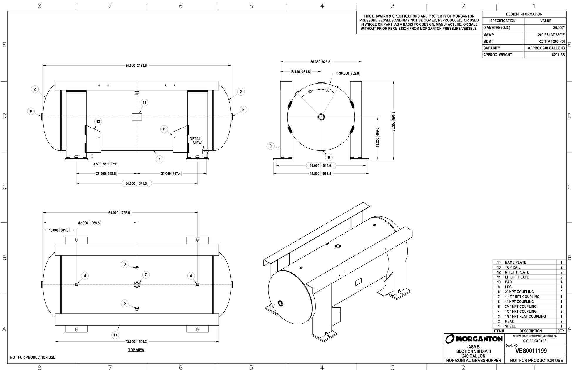 240 Gallon 200PSI Grasshopper Horizontal Air Tank By Morganton | VES0011199