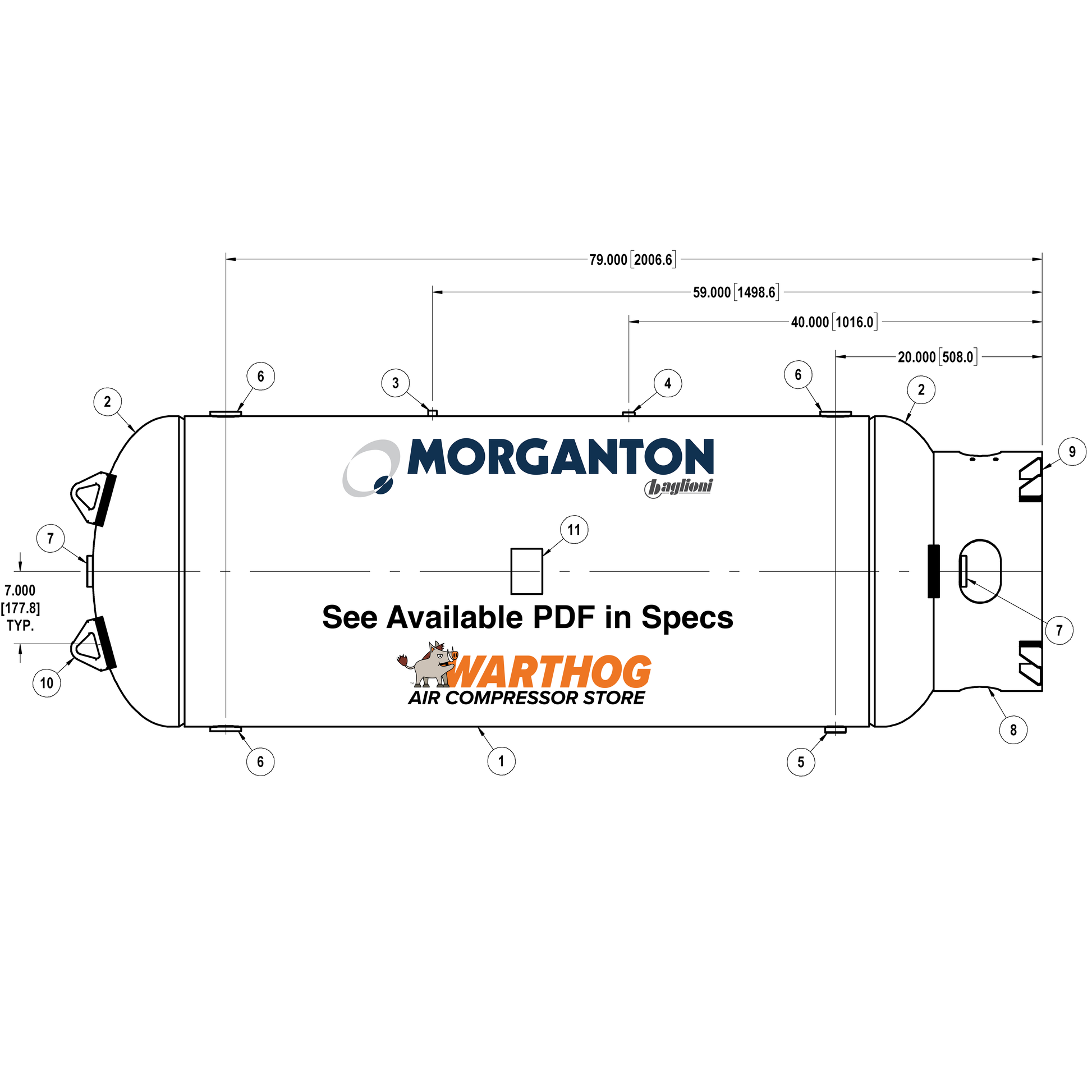 240 Gallon 300 PSI Vertical Air Tank with Base ring by Morganton | VES0009907 - Grey Primer