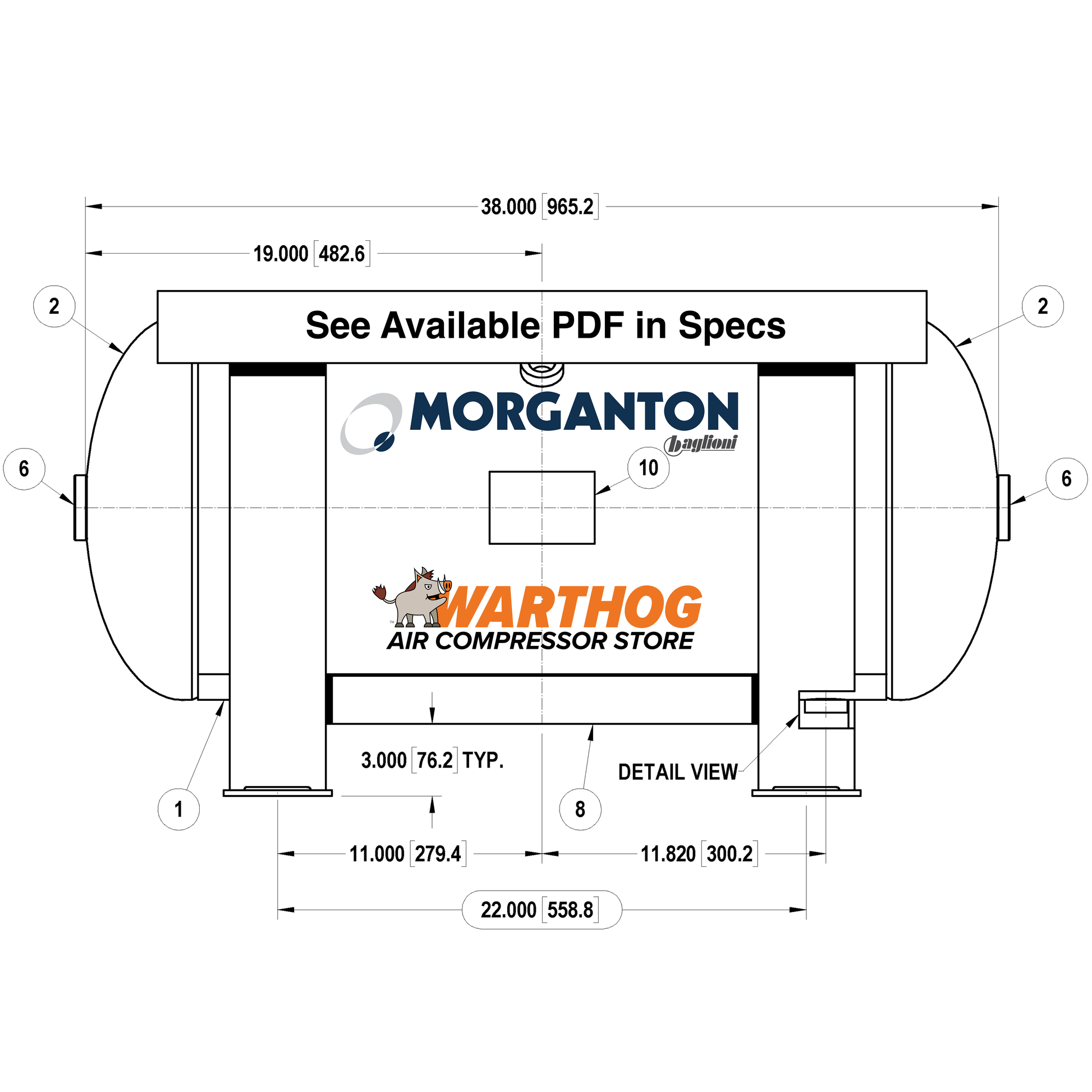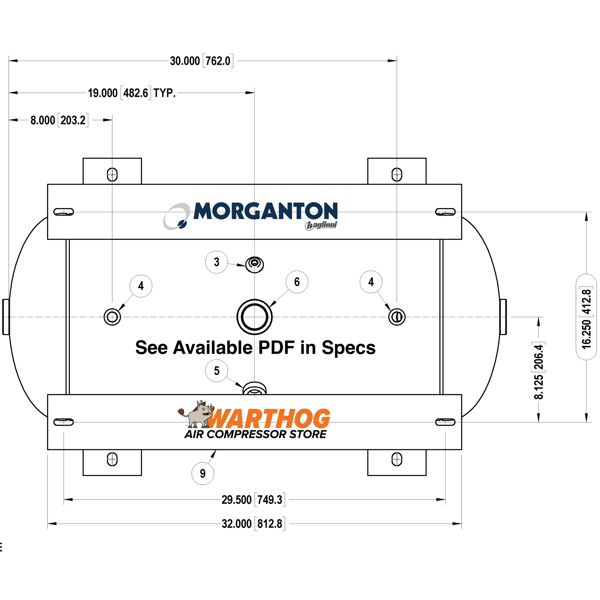 30 Gallon 200PSI Grasshopper Horizontal Air Tank By Morganton | VES0011194