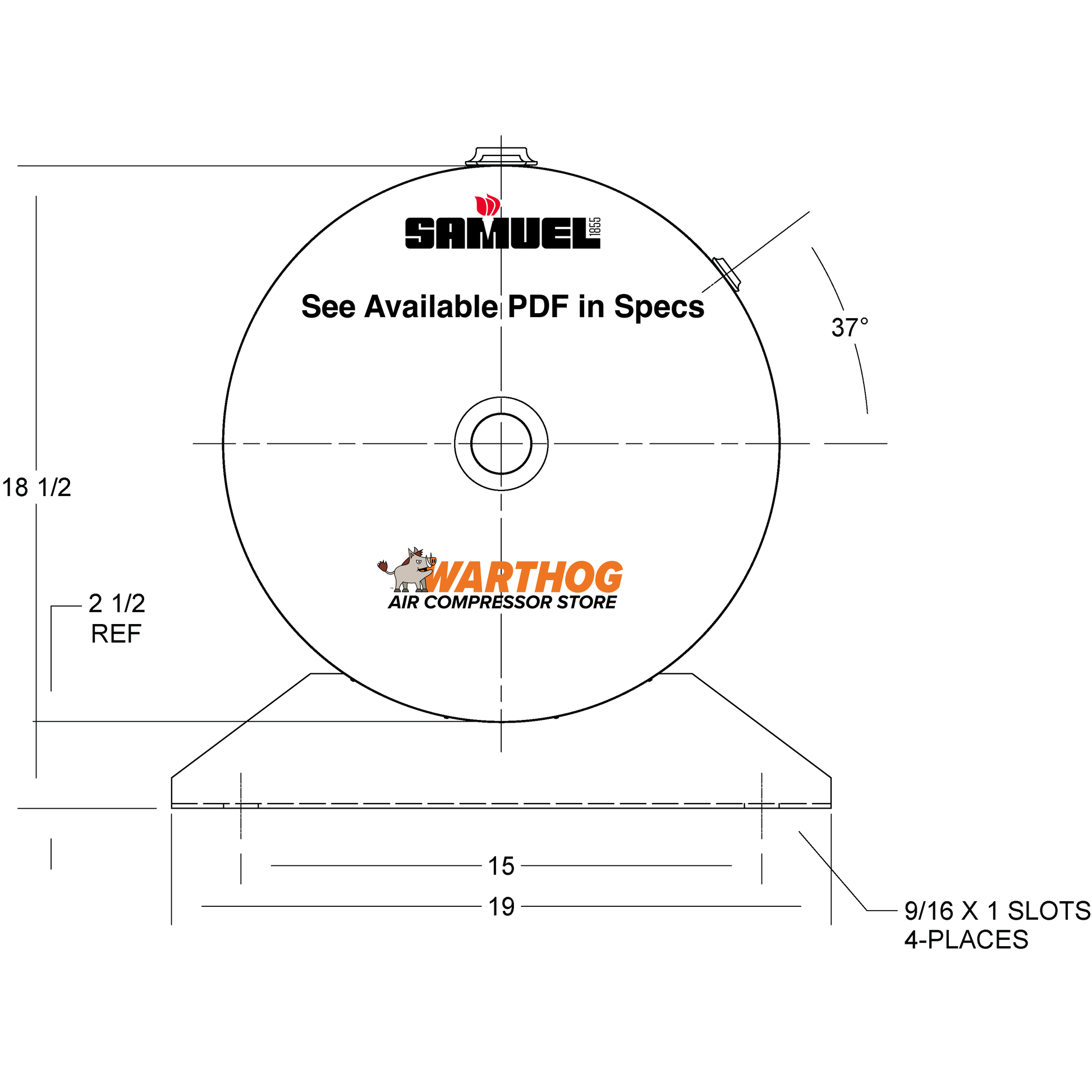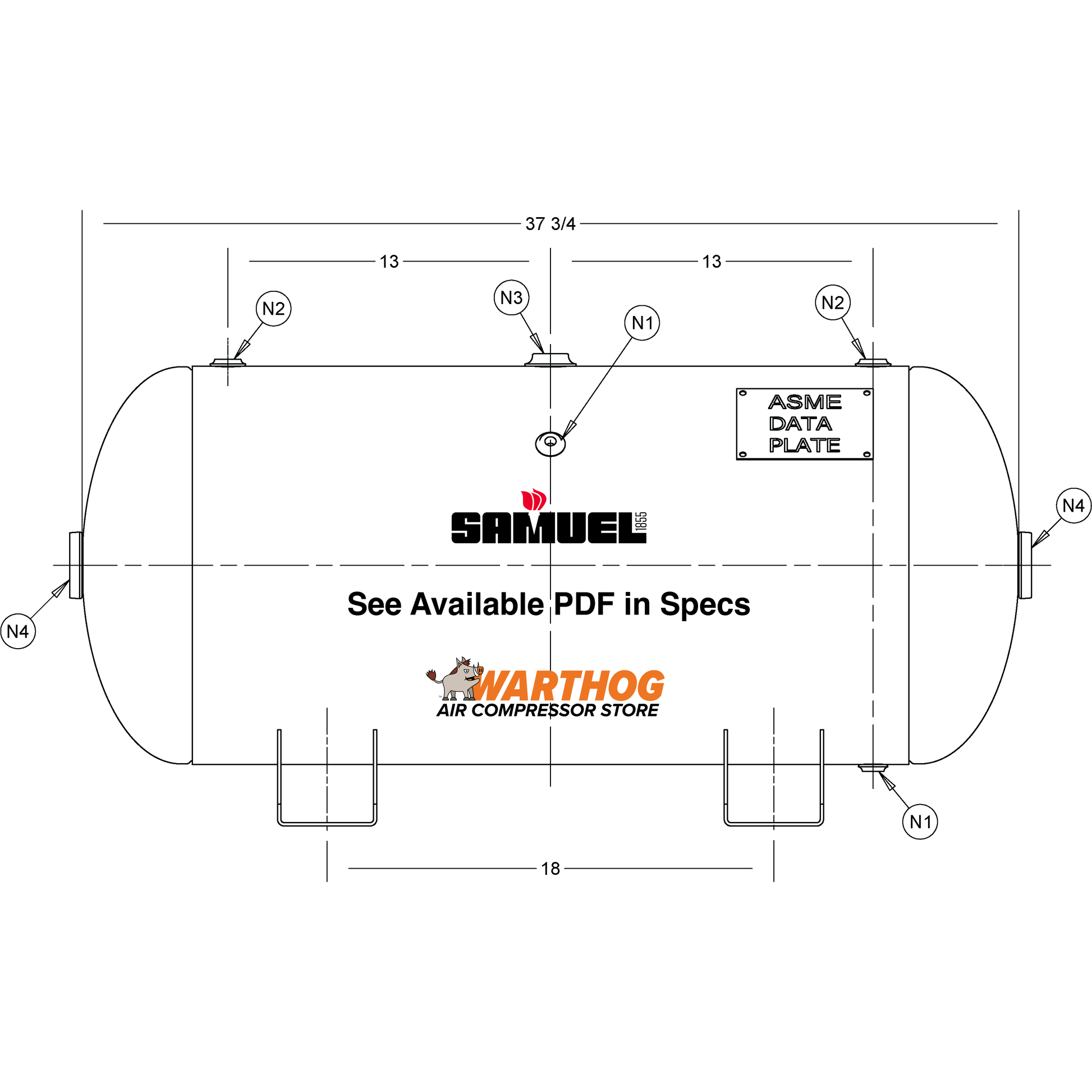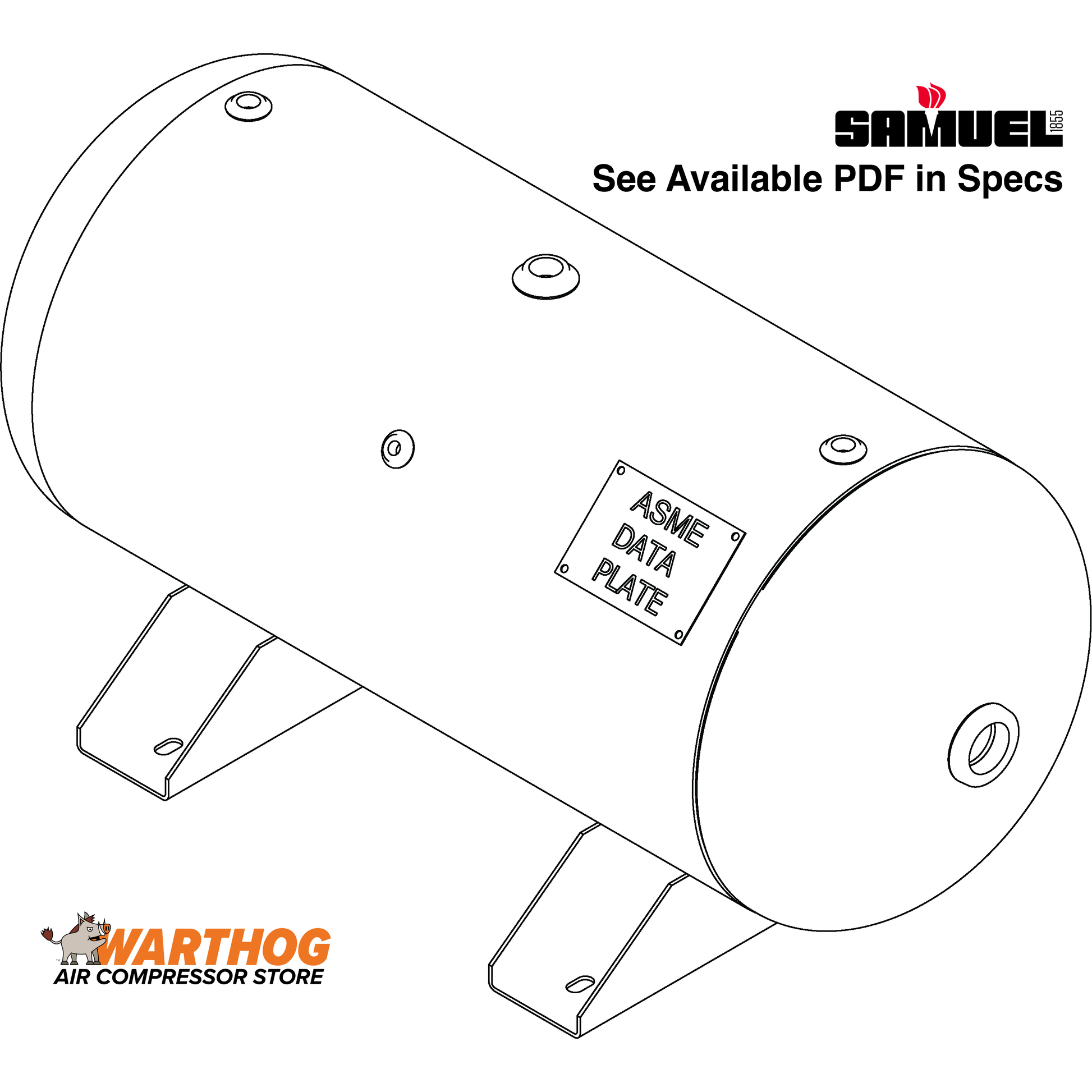 30 Gallon 200PSI Horizontal Air Tank By Samuel with Saddle legs | A10027