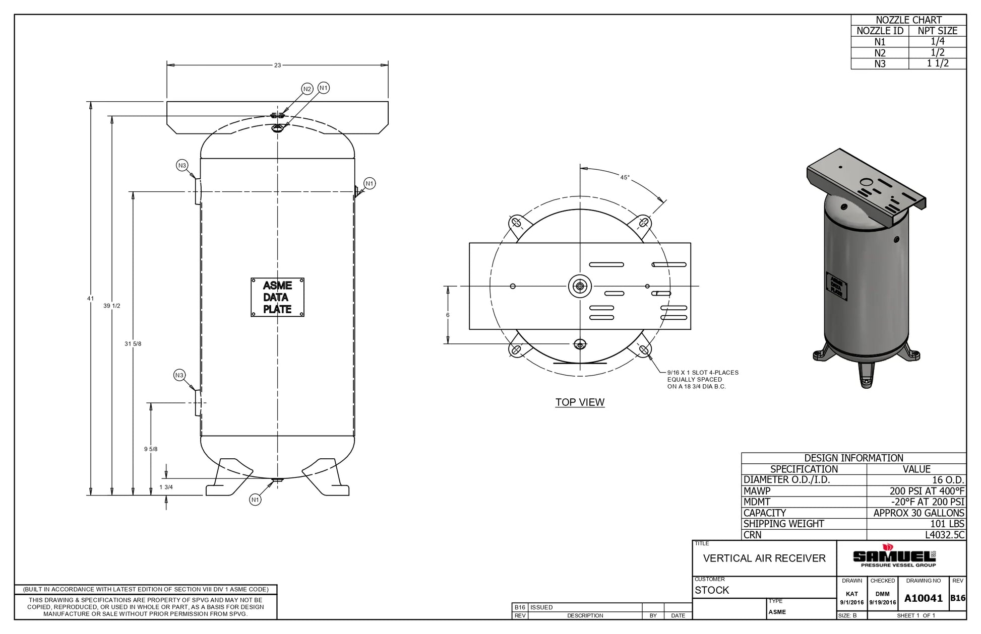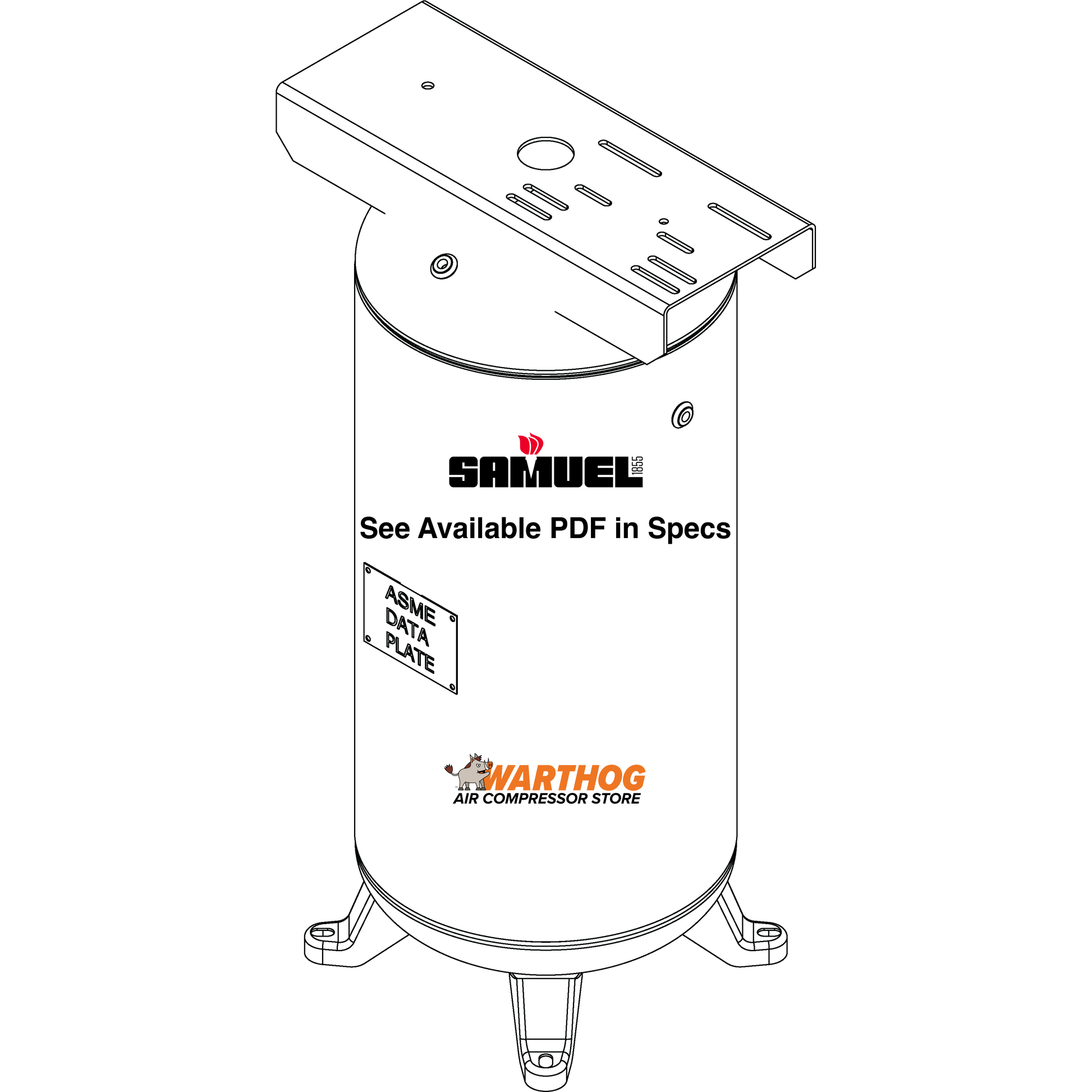 30 Gallon 200PSI Vertical Air Tank By Samuel with 4 feet, 9" X 23" top plate | A10041