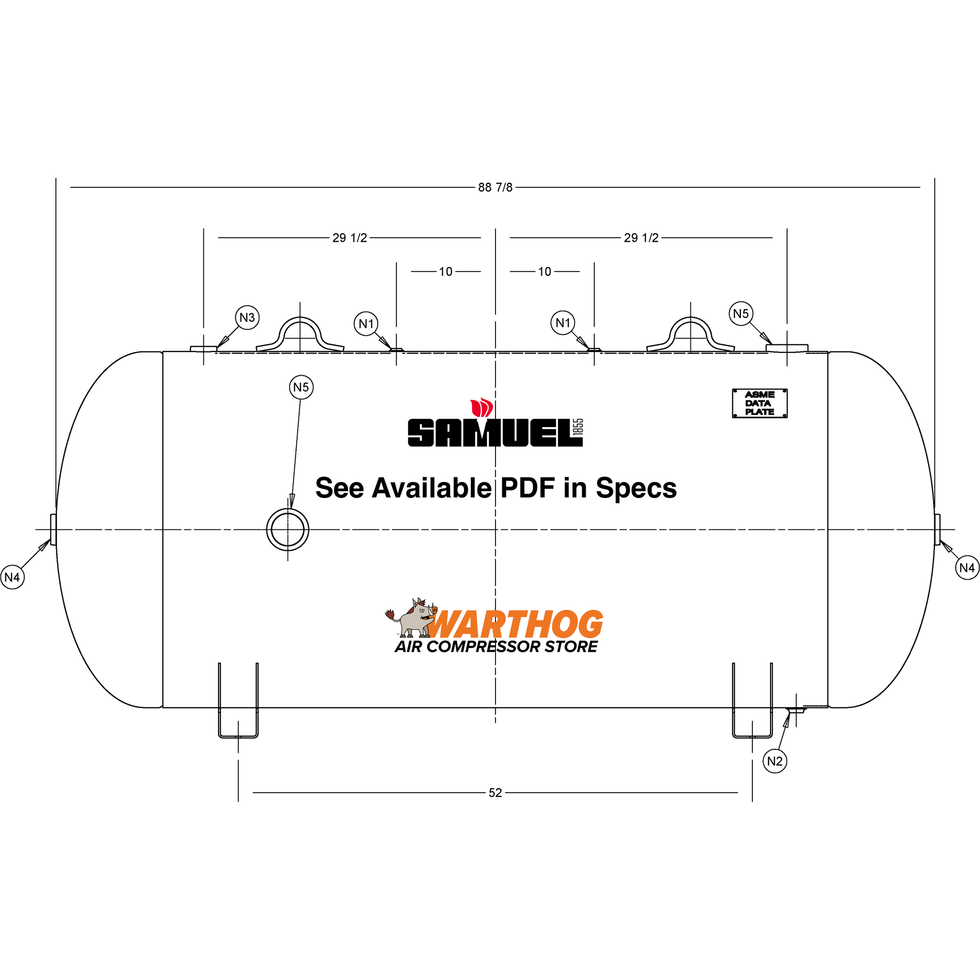 400 Gallon 165PSI Horizontal Air Tank By Samuel with Saddle legs | A10346