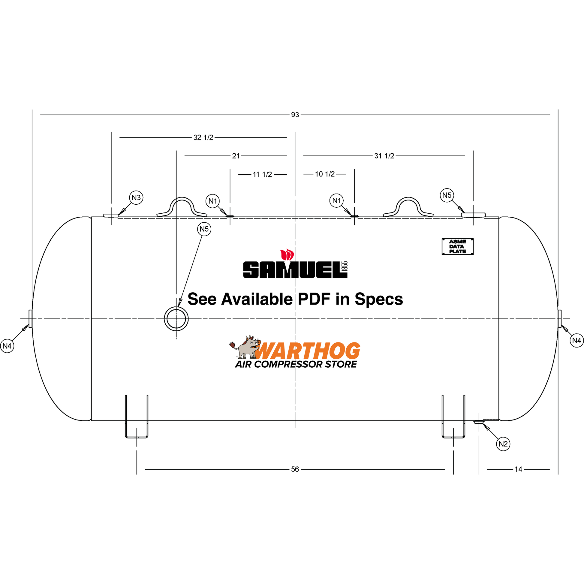 400 Gallon 200PSI Horizontal Air Tank By Samuel with Saddle legs | A10348