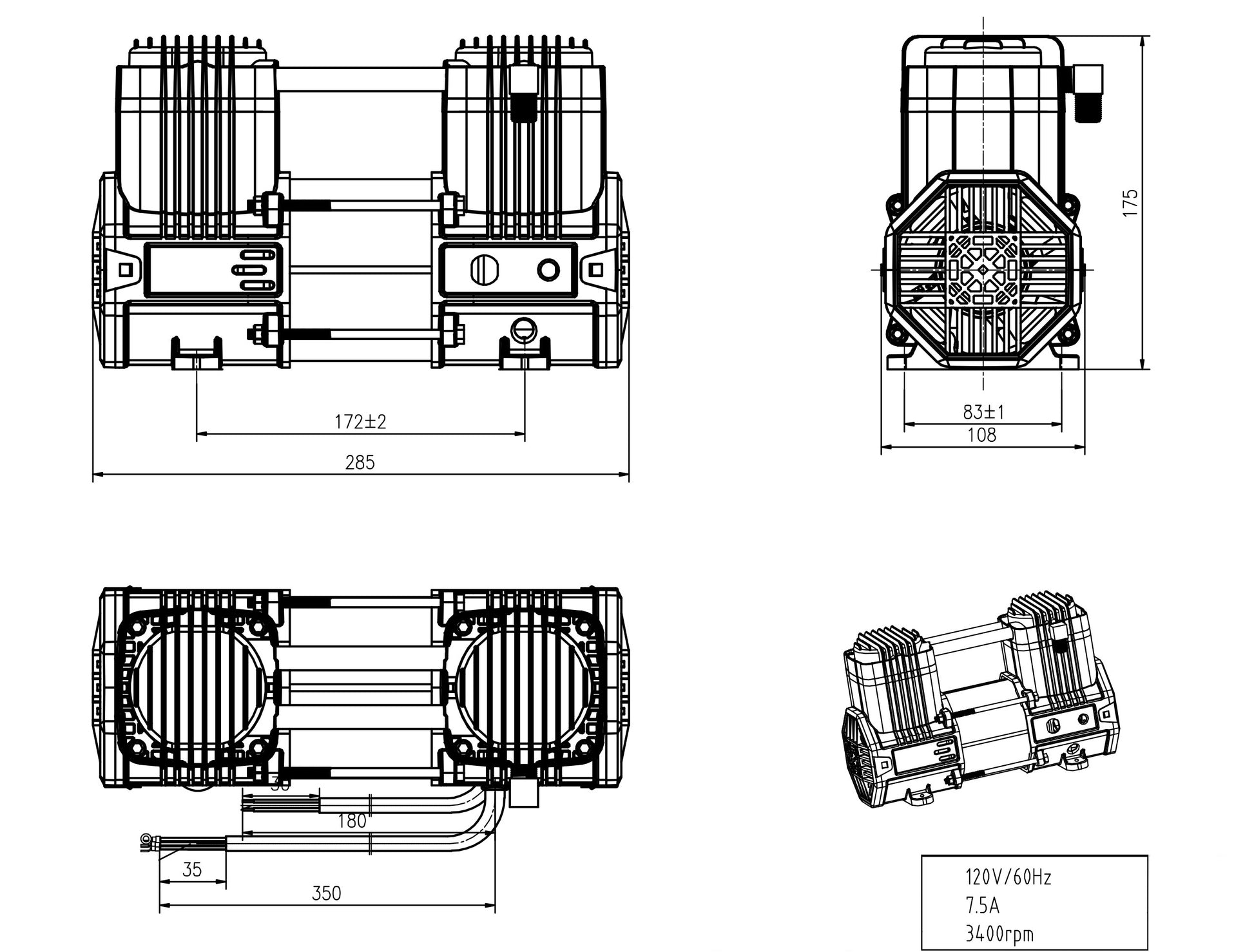 - Low Amp Draw: 7.5 Amps (110V / 60 Hz)
