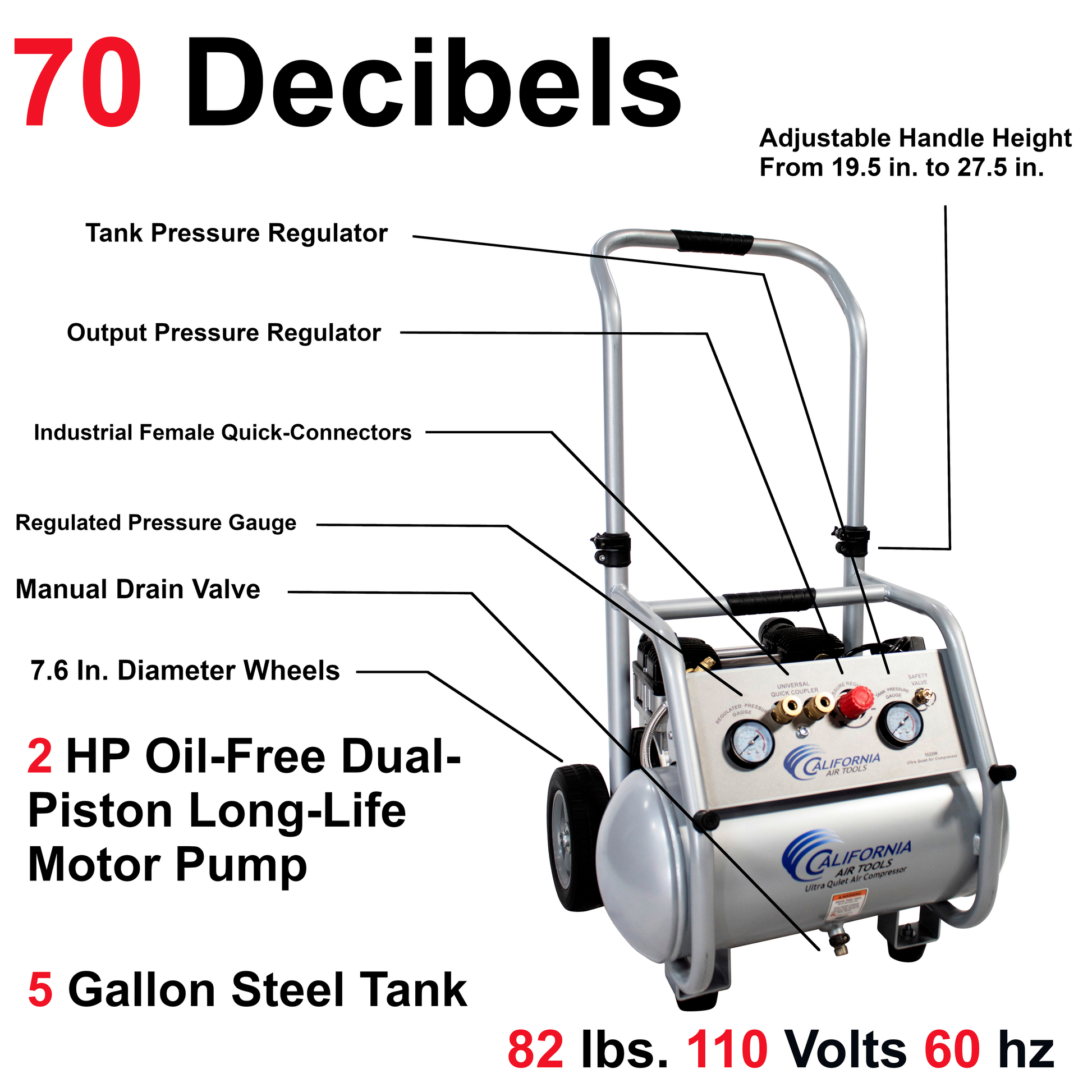 California Air Tools 5 Gal 2 Hp Ultra-Quiet Oil-Free Rugged Air Compressor | CAT-5020W