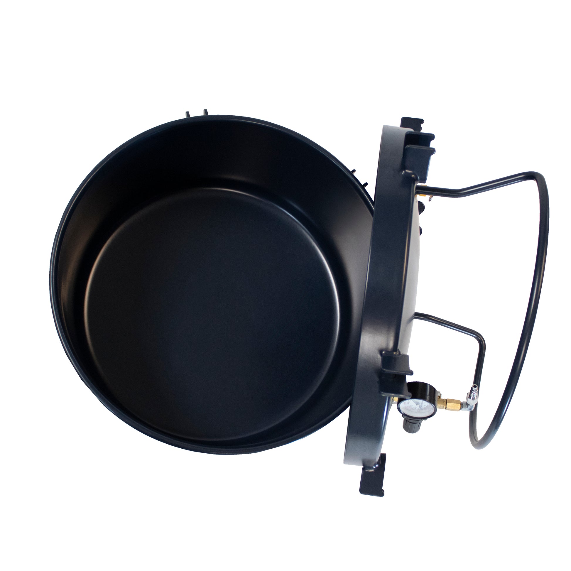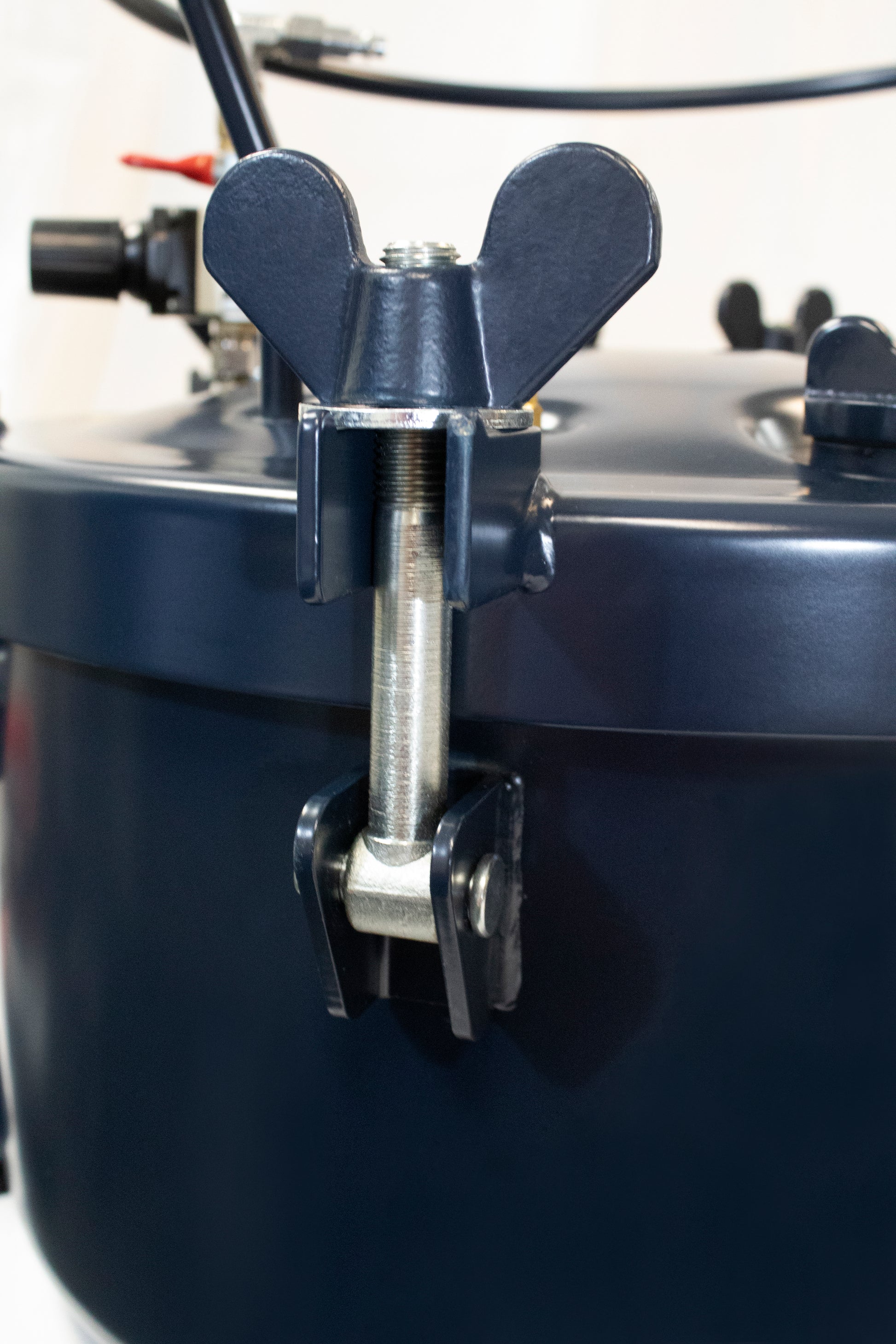 The California Air Tools 365 5-Gallon Pressure Pot includes an HVLP spray gun, paint hose, and air hose, providing a complete painting solution. Featuring a durable, easy-to-clean Teflon-coated steel tank and removable caster wheels for convenient mobility.
