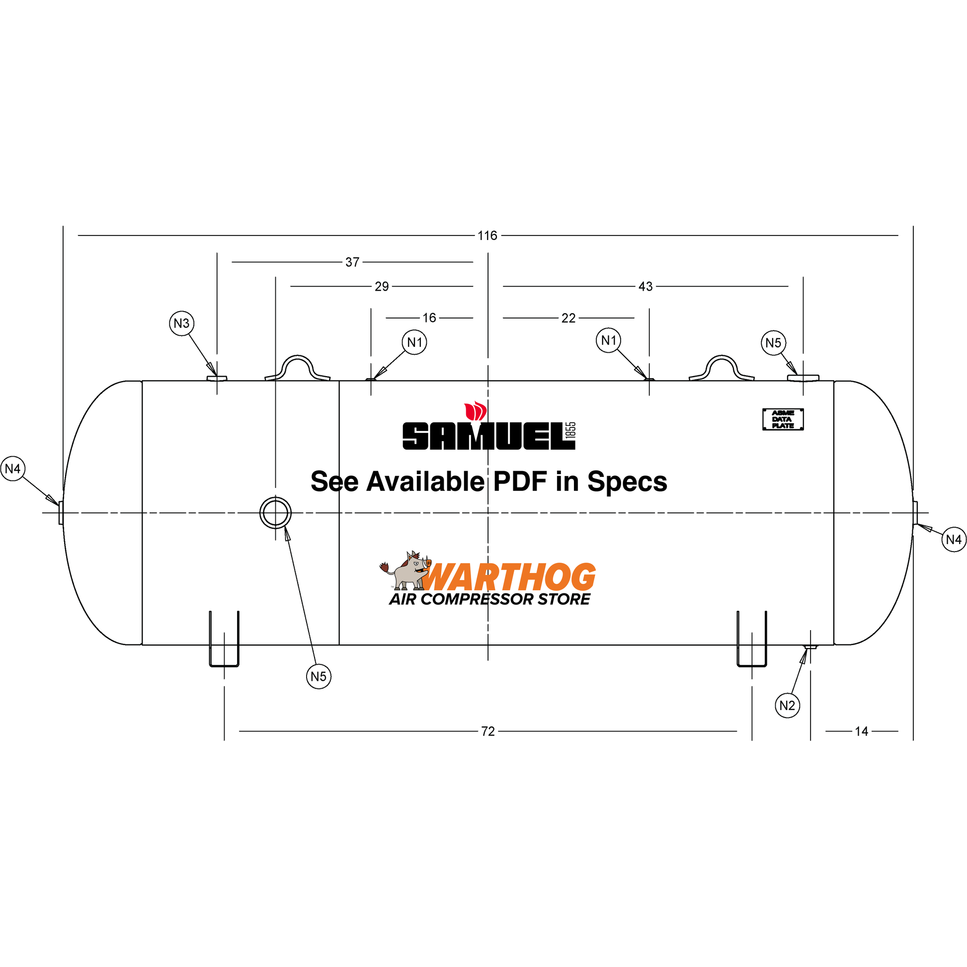 500 Gallon 165PSI Horizontal Air Tank By Samuel with Saddle legs | A10352