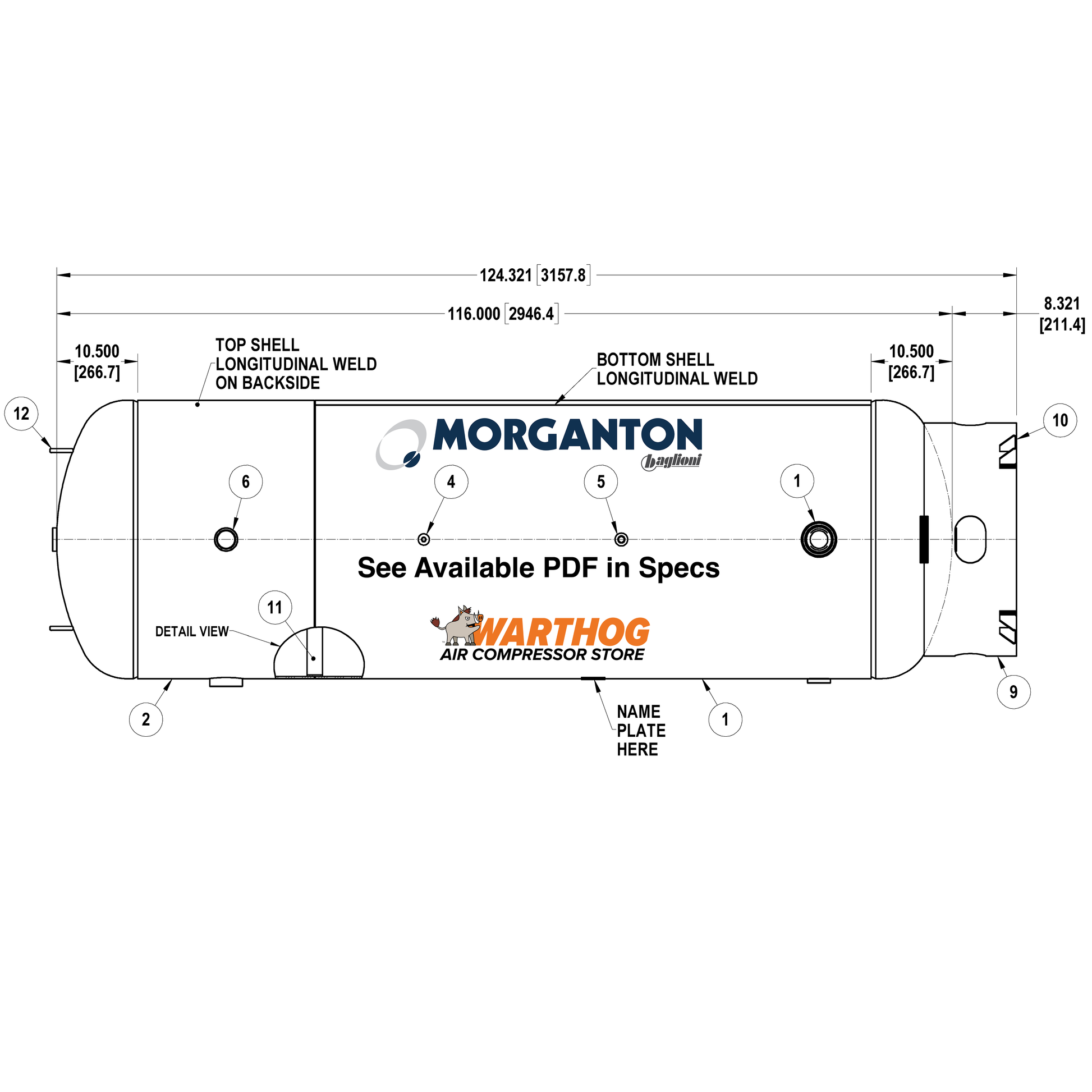 500 Gallon 200PSI Vertical Air Tank with Base ring by Morganton | VES0010668