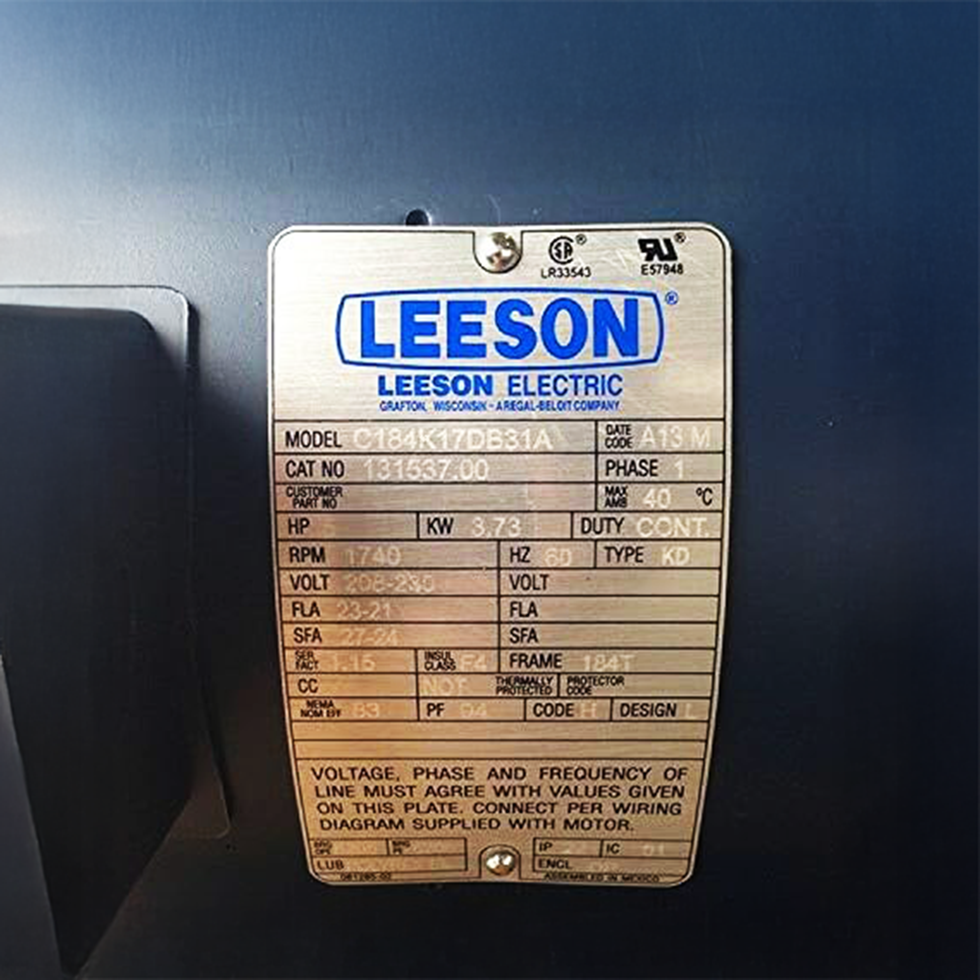 The 5HP LEESON 1740 RPM 184T DP 208-230V 1PH Air Compressor Motor (Product ID / Model: 131537.00) is a heavy-duty, single-phase replacement motor engineered specifically for industrial and commercial air compressor use. With a true 5 horsepower output, 1740 RPM operating speed, and a standard 184T frame, it’s designed to drop into many common compressor platforms that require a tough, reliable 208–230V motor.