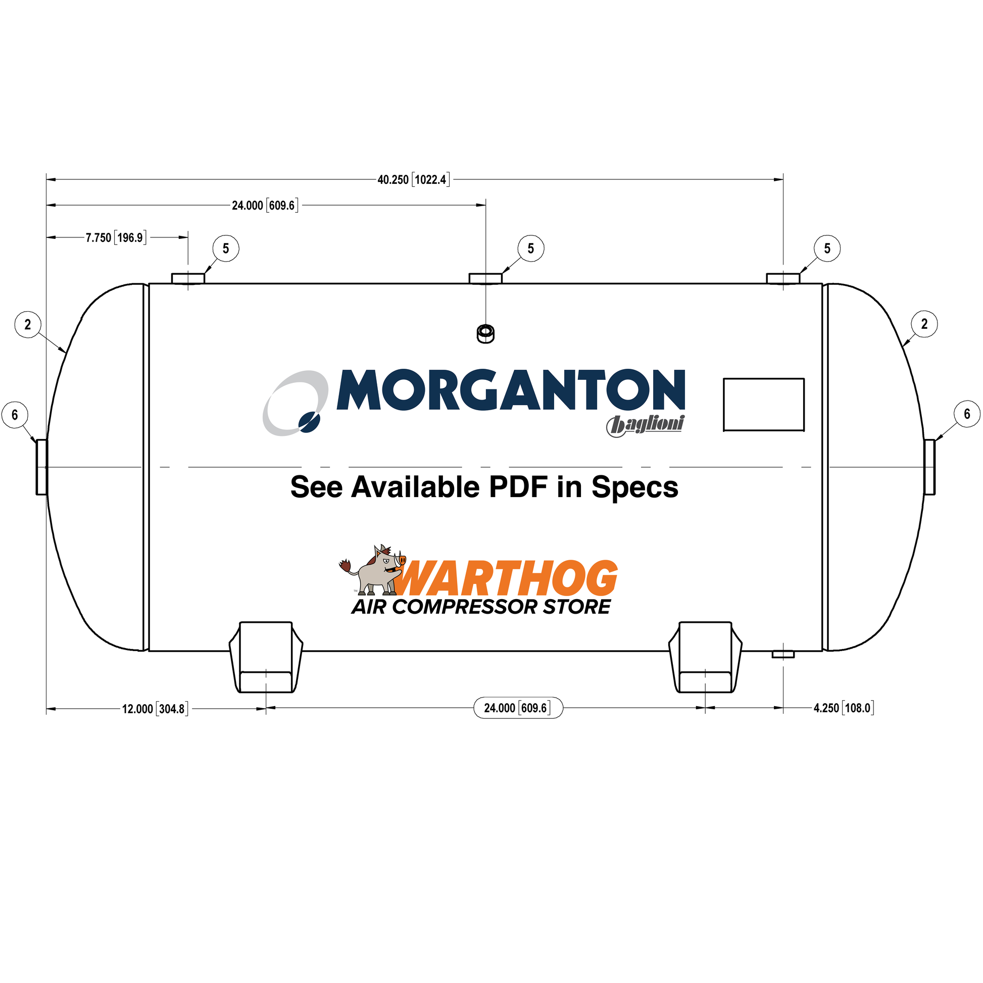 60 Gallon 200 PSI Horizontal Air Tank with Feet by Morganton | VES04850