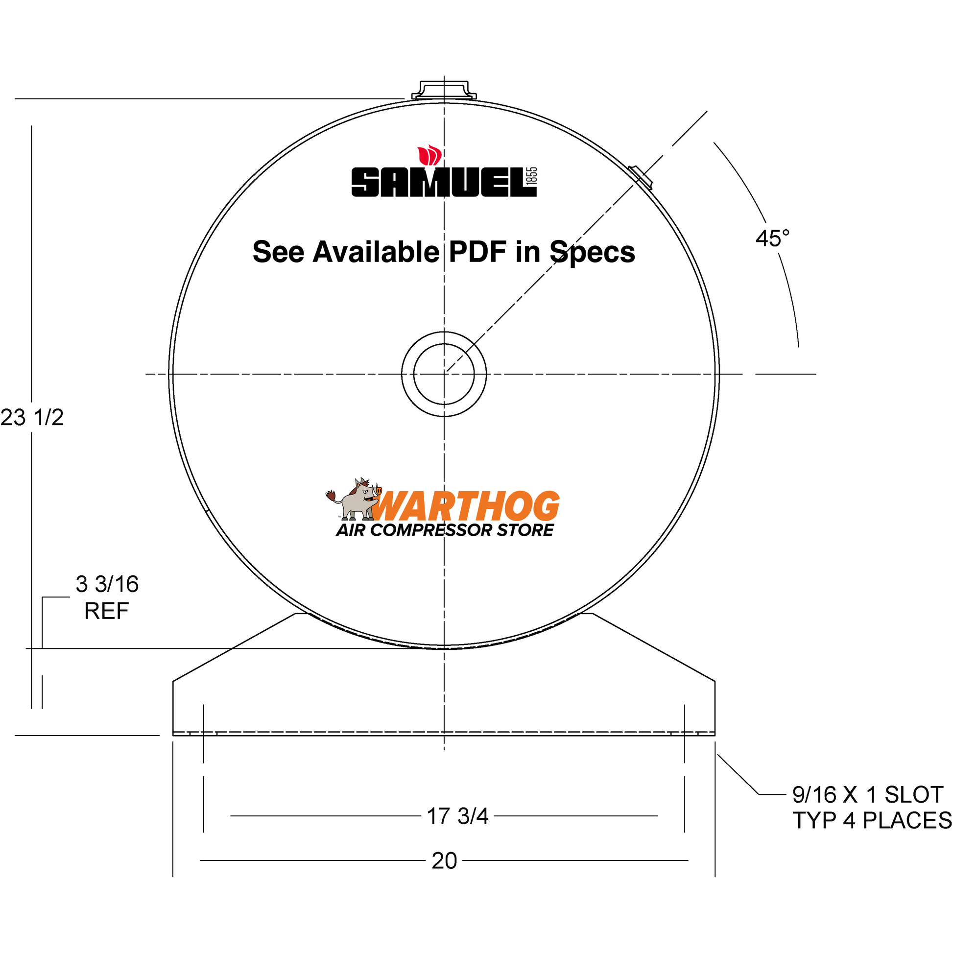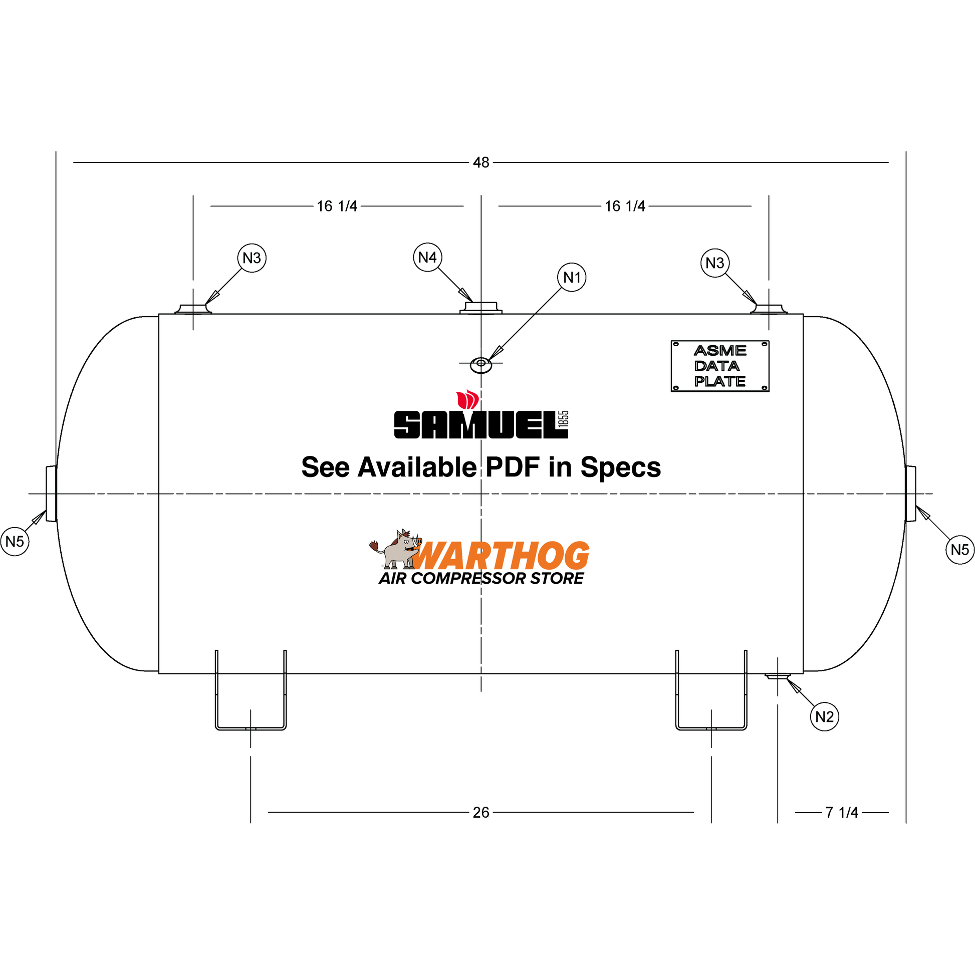60 Gallon 200PSI Horizontal Air Tank By Samuel with Saddle legs | A10029