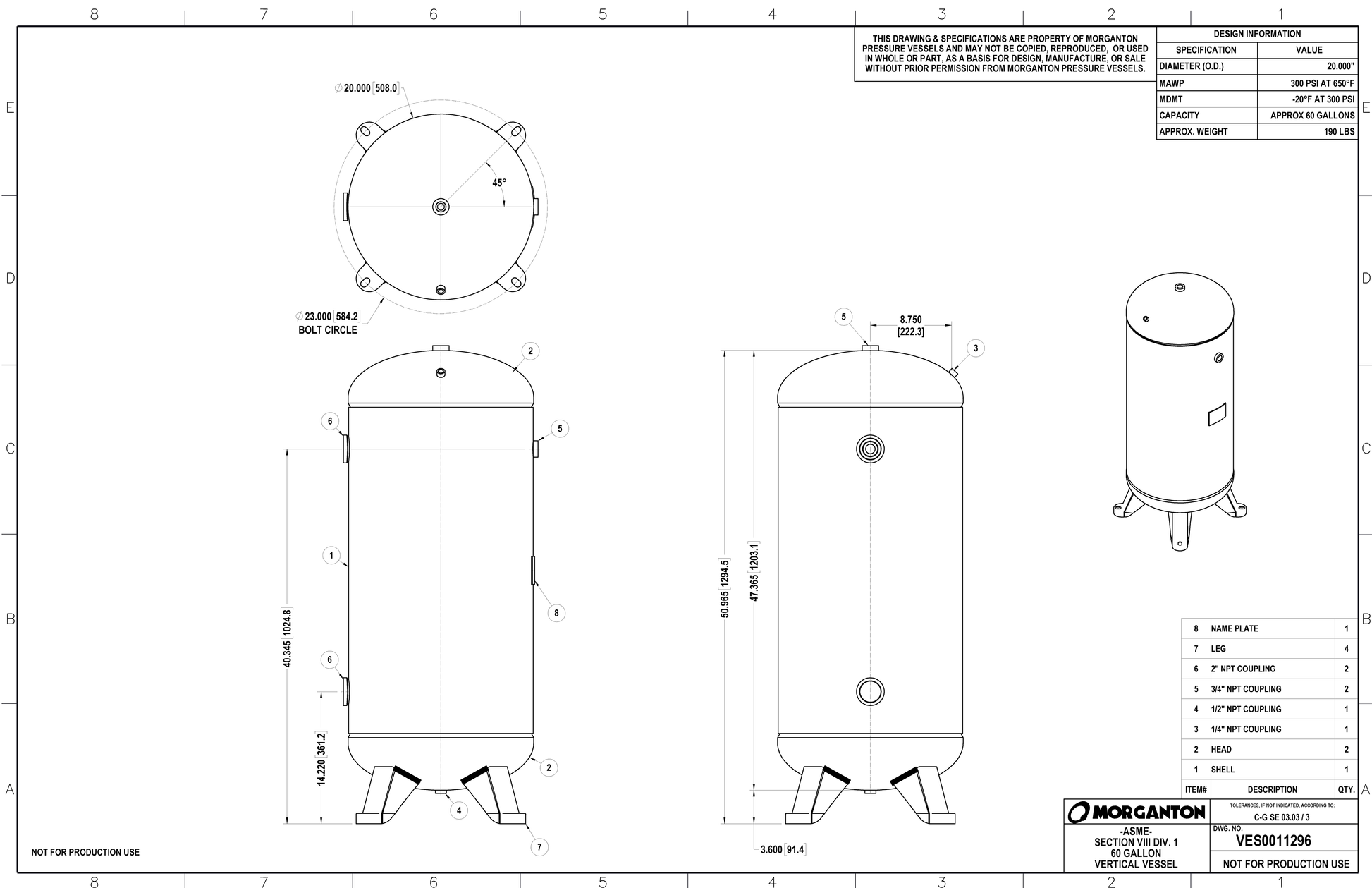 60 Gallon 300PSI Vertical Air Tank By Morganton | VES0011296