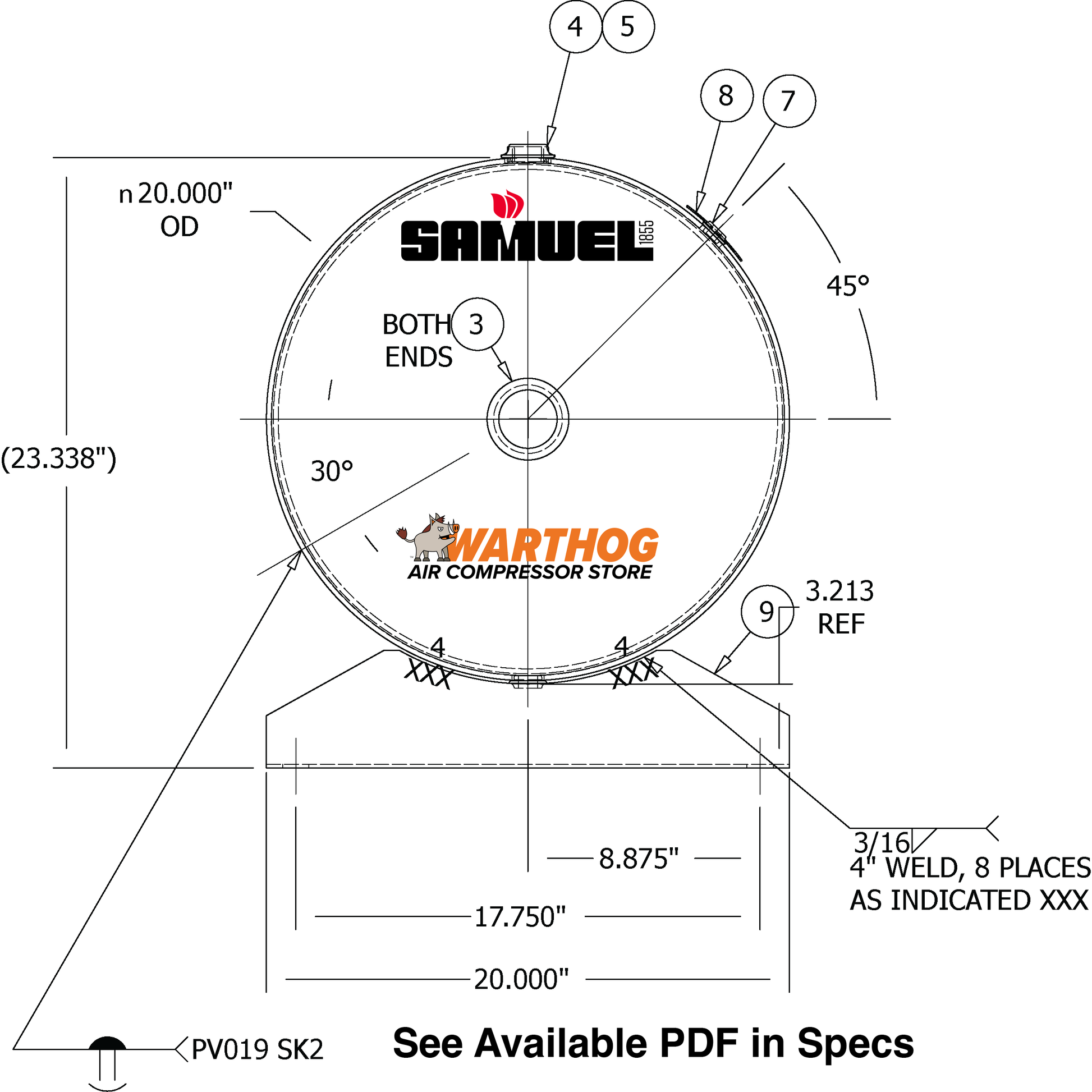 60 Gallon 300PSI Horizontal Air Tank By Samuel with Saddle legs | A10029-300