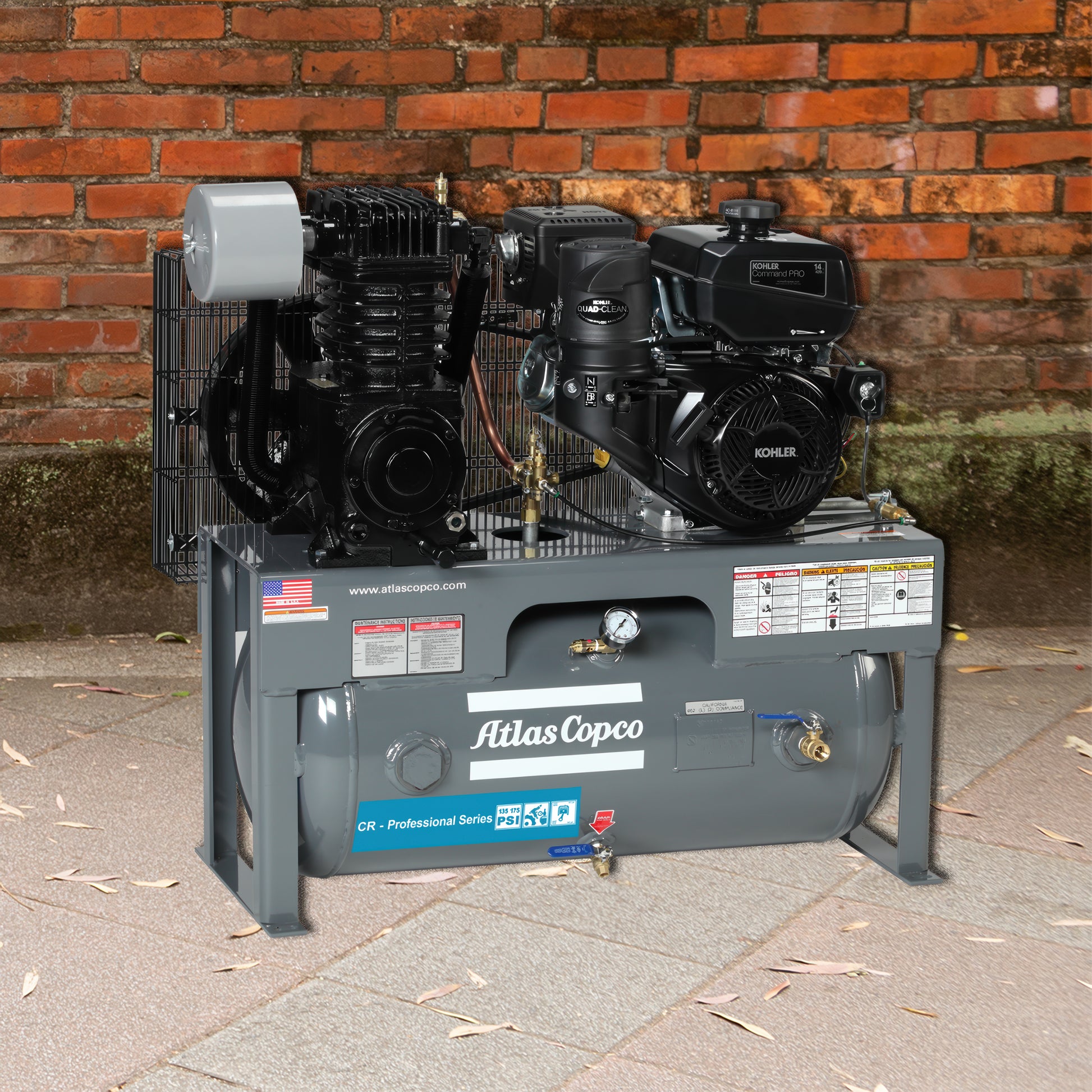 Atlas Copco 13 HP CR Gas-Powered Cast-Iron Piston Air Compressor