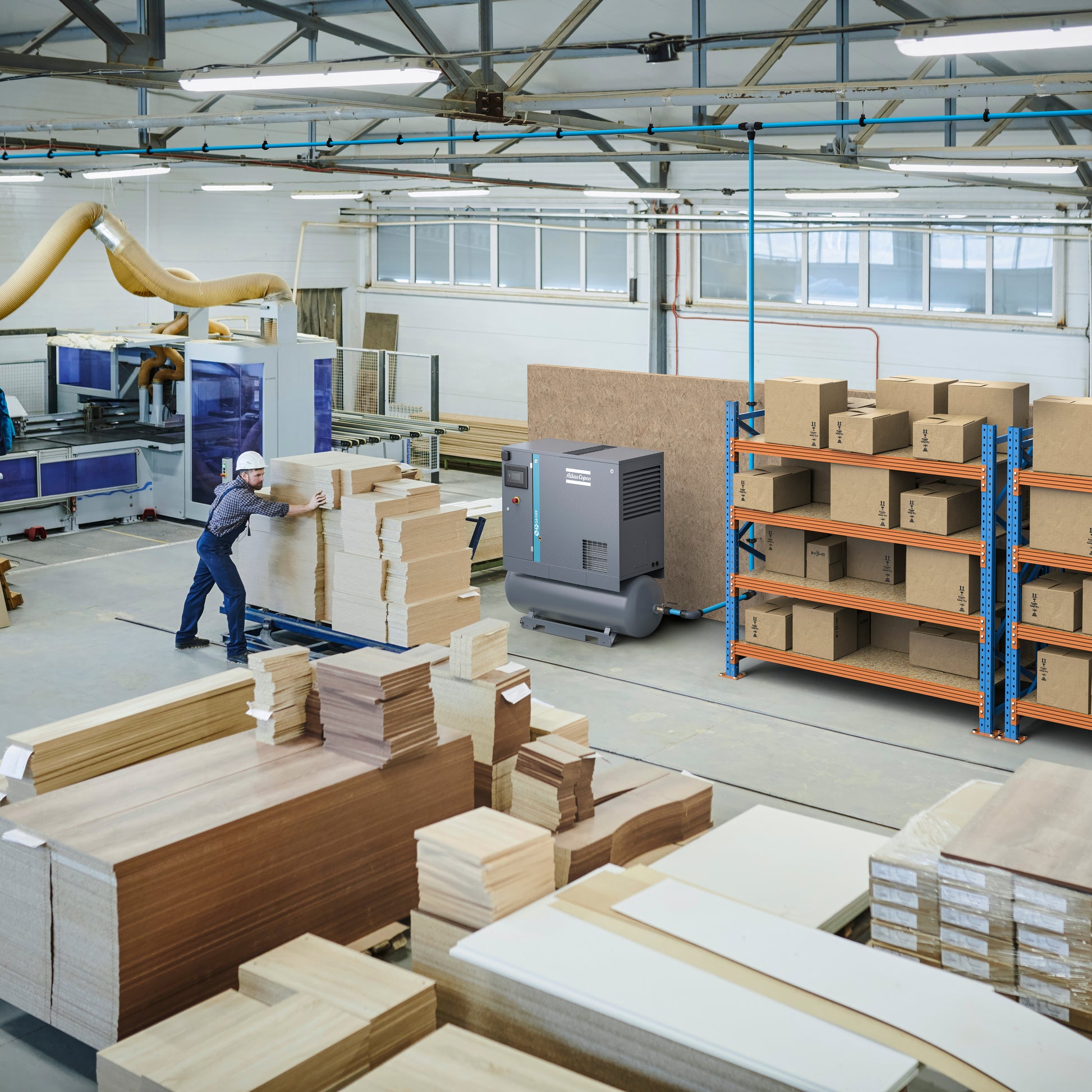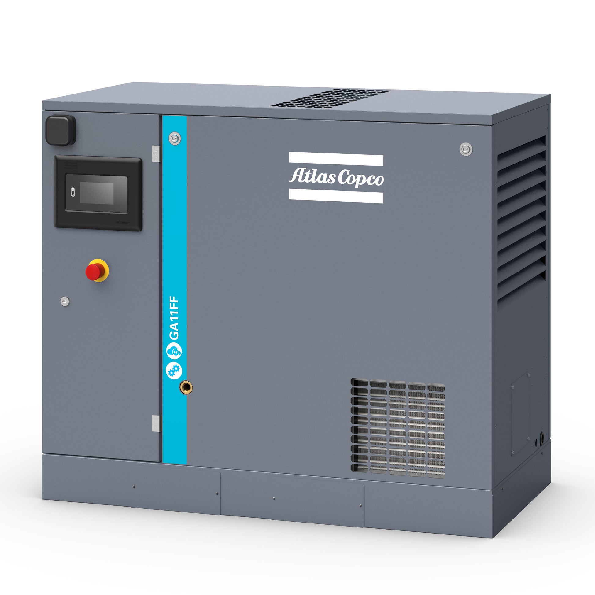 - IE3-efficiency motor mated to Atlas Copco’s time-proven screw element and optimized packaging: up to +8% Free Air Delivery and –7% power use vs prior designs.