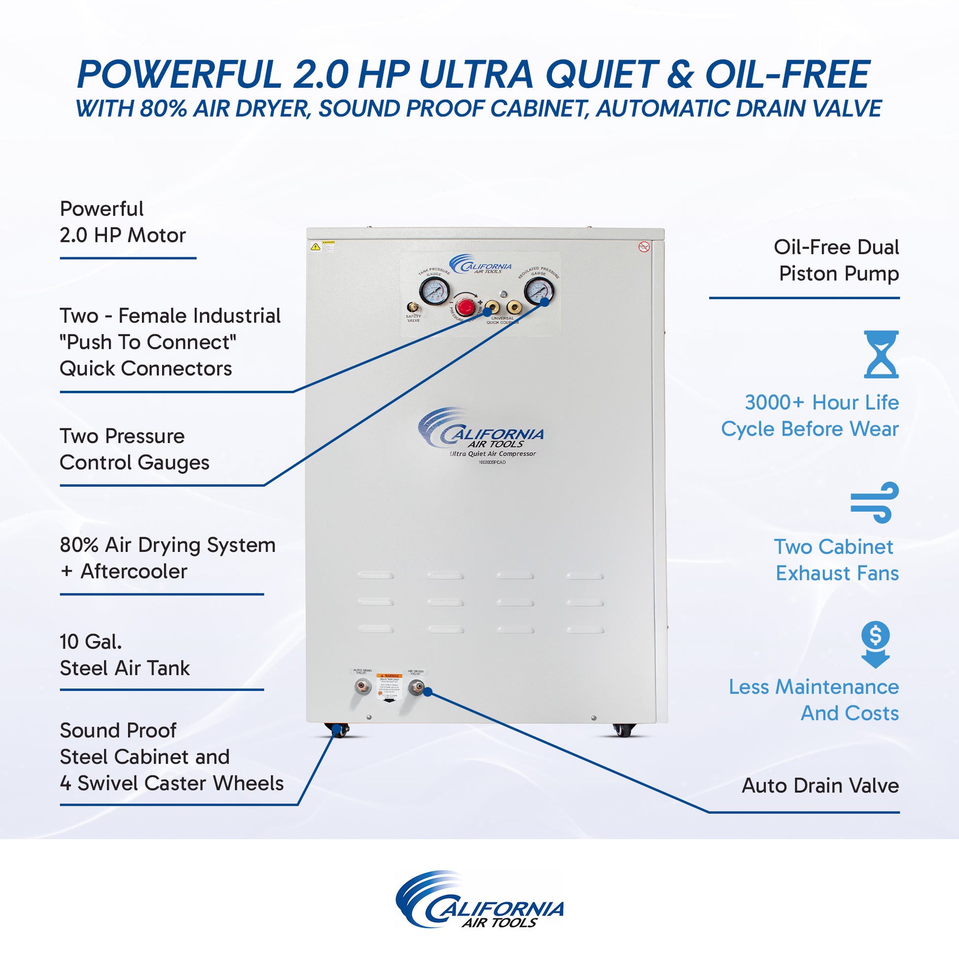 California Air Tools 2.0 Hp 10.0 Gal. Ultra Quiet & Oil-Free Air Compressor with Air Dryer in Sound Proof Cabinet