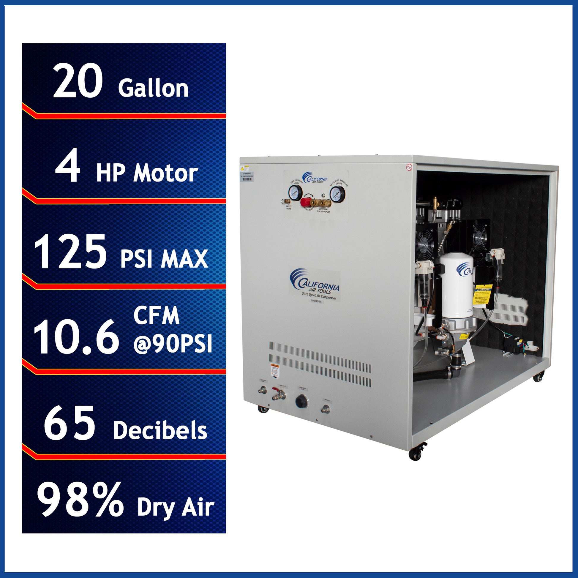 California Air Tools 4.0 Hp, 20.0 Gal. Ultra Quiet & Oil-Free Air Compressor with Air Drying System & Auto Drain in Cabinet