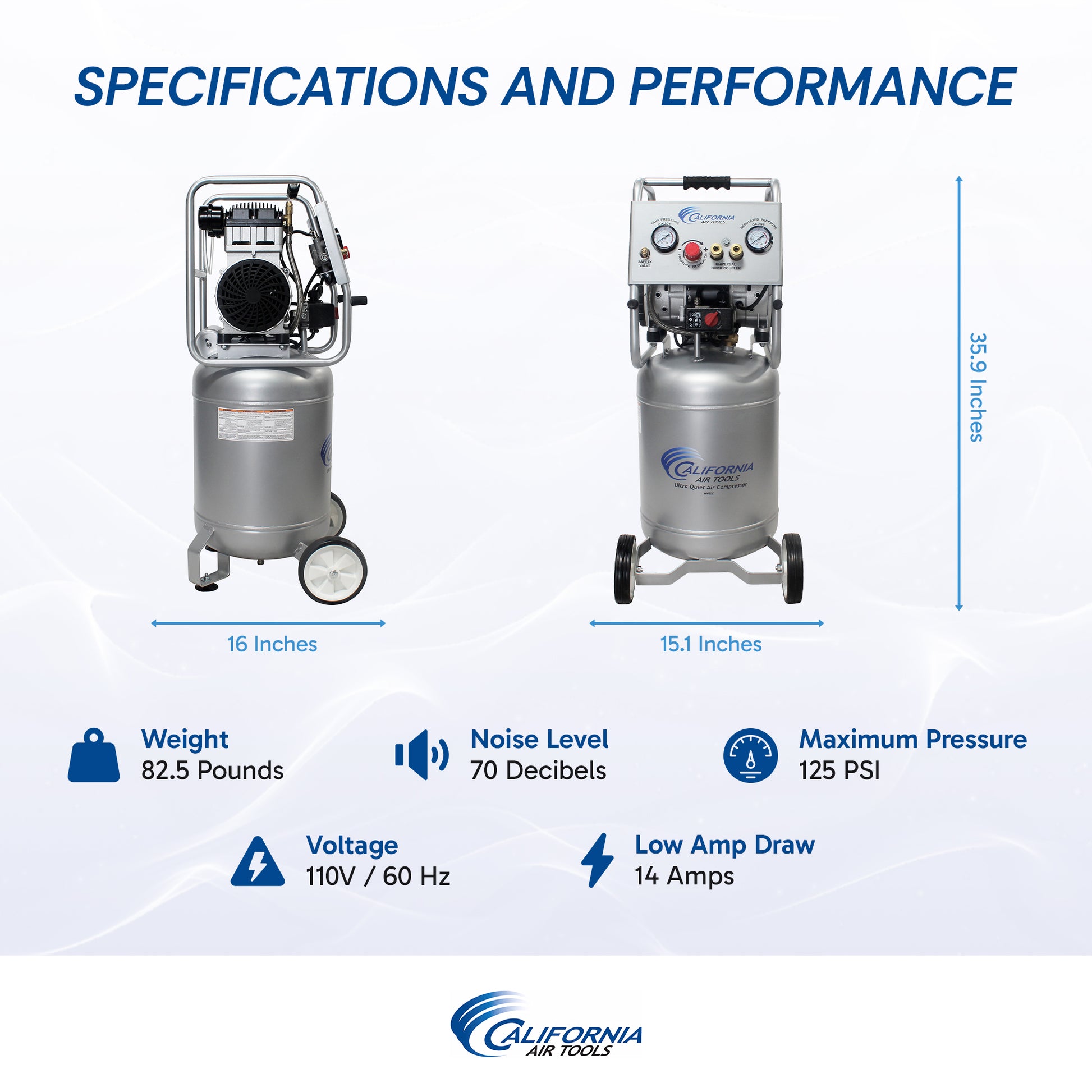 California Air Tools 2.0 Hp, 10.0 Gal. Steel Tank Ultra Quiet & Oil-Free Air Compressor