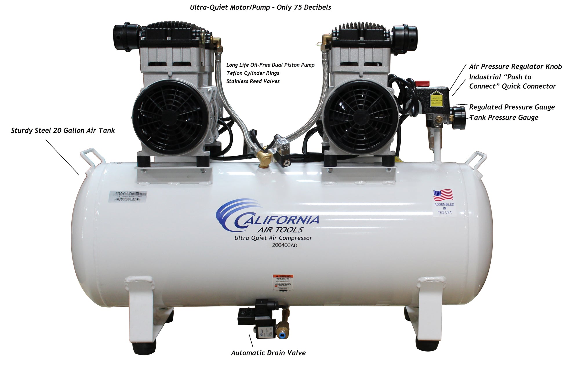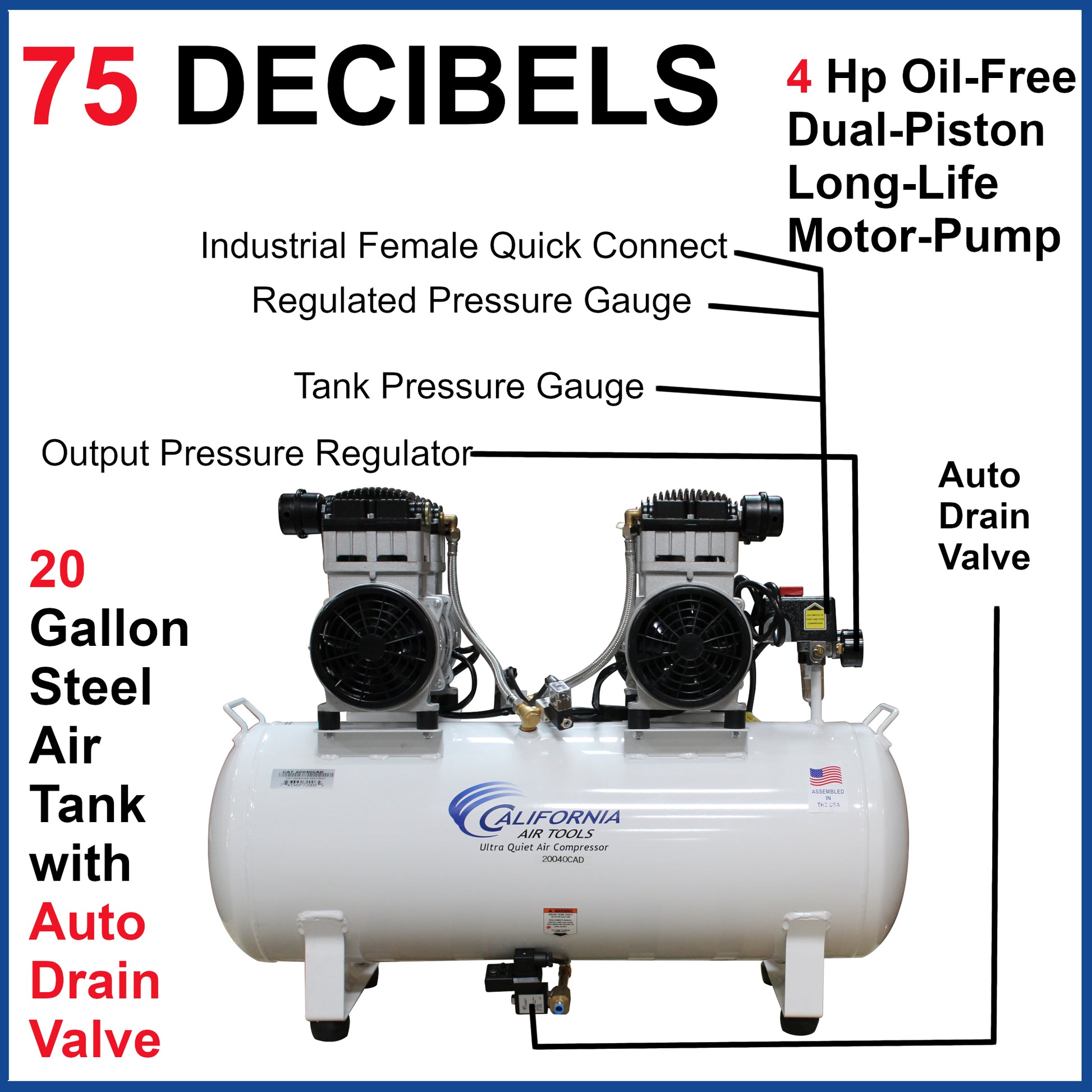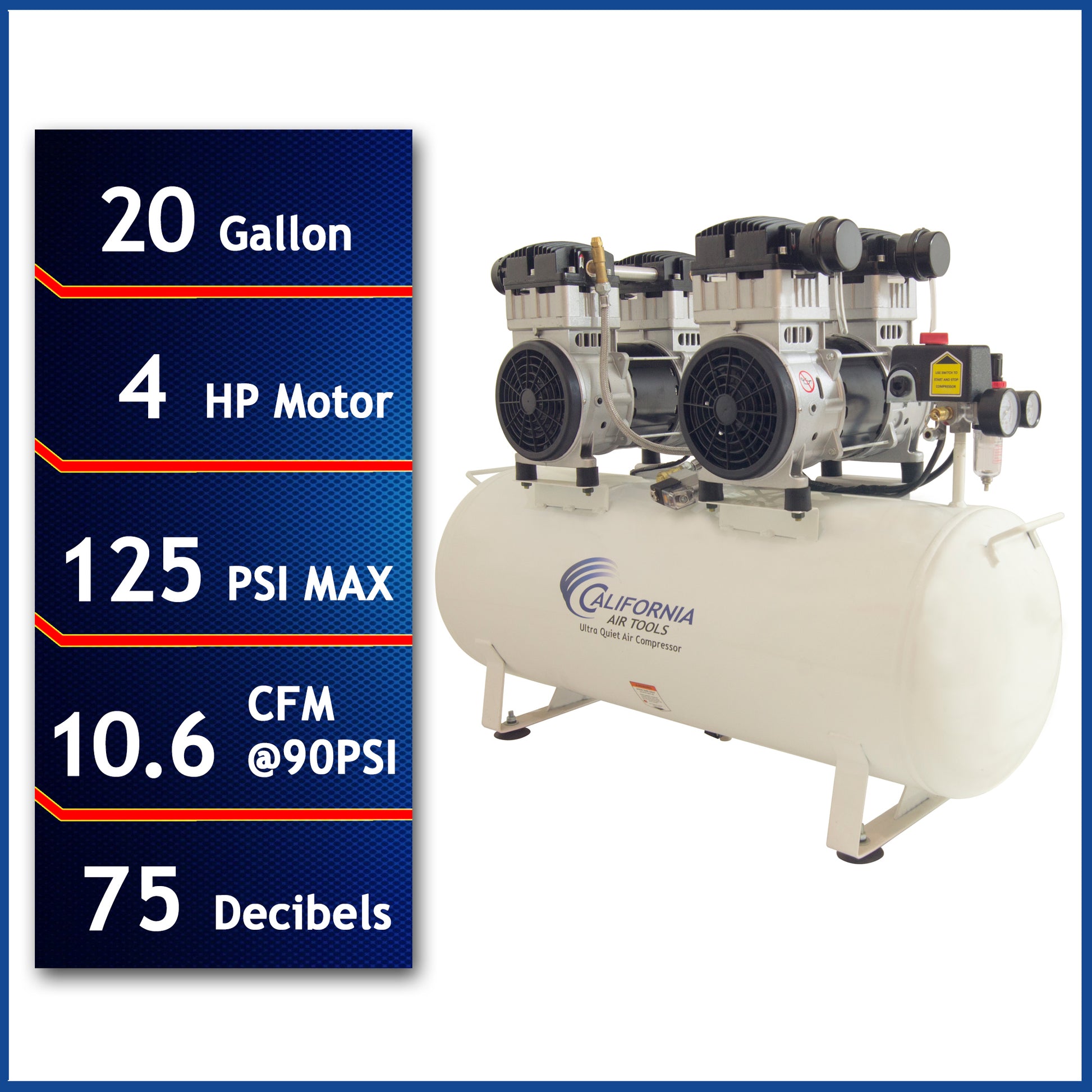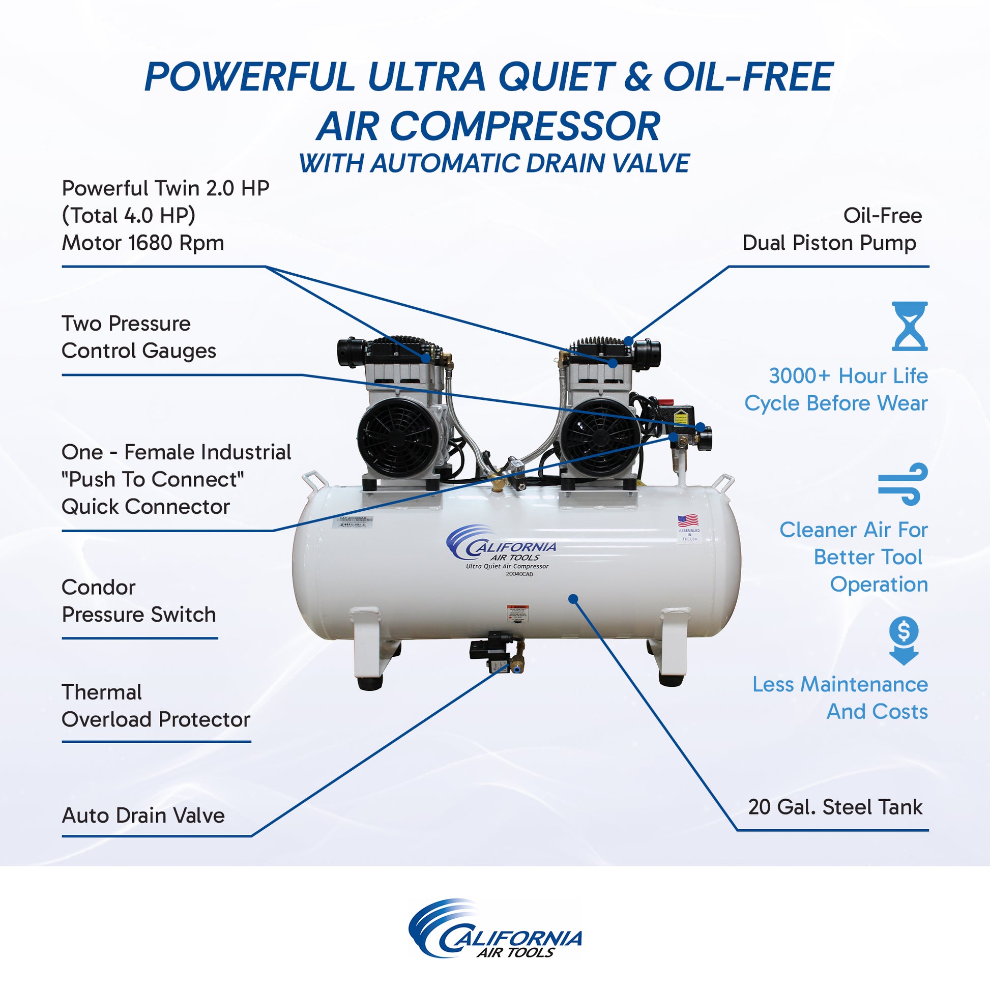 California Air Tools 4.0 Hp, 20.0 Gal. Steel Tank Ultra Quiet & Oil-Free Air Compressor with Auto Drain Valve