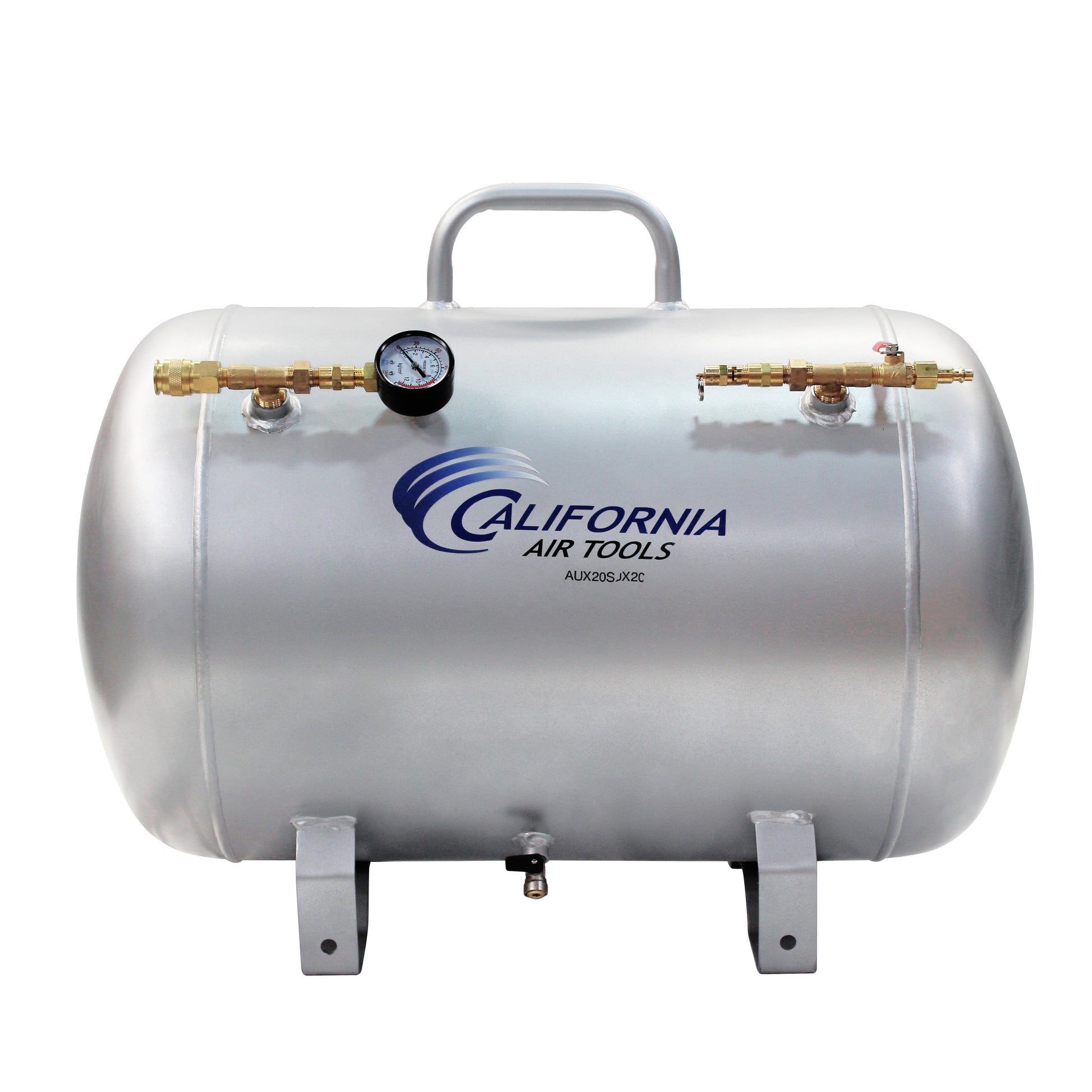 The California Air Tools AUX20S 20-Gallon Steel Auxiliary Air Tank offers easy portability and practical convenience with a lightweight (42 lbs) design. Perfect for short-term air demands such as tire inflation and spray painting, this tank provides stable pressure and consistent airflow, extending compressor run-time.