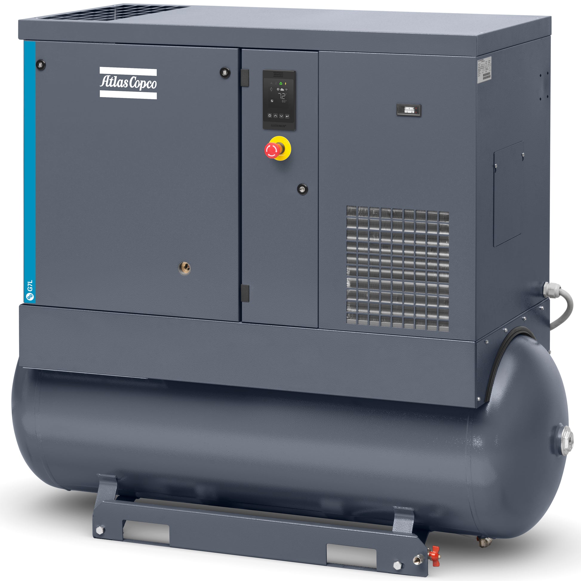 If you choose a Full Feature tank-mounted unit, Atlas Copco also uses a “dry tank” concept (the dried air is stored in the receiver), which helps extend receiver life by reducing internal moisture exposure.