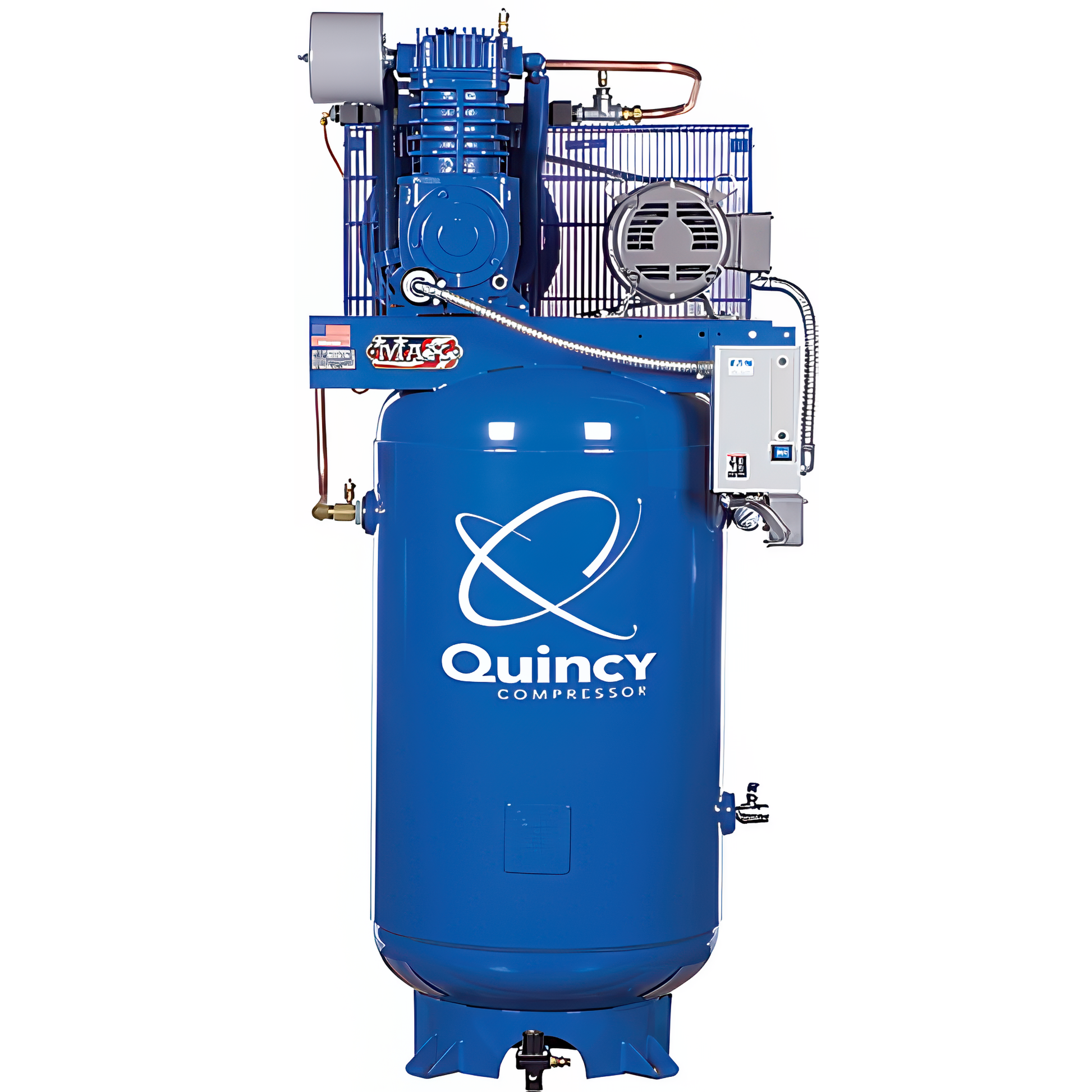 Quincy packs a one-two punch when comparing components to lower priced compressors. We feature IEC magnetic starters, premium motors, high quality pressure switches, metal automotive style filter/silencers, and a manual ball valve-style tank drain.