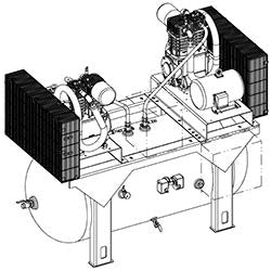 - Standard features for tank and base mount units - EISA 3-phase 60hz motors, OSHA style belt guard, pressure sensor for start/stop control.