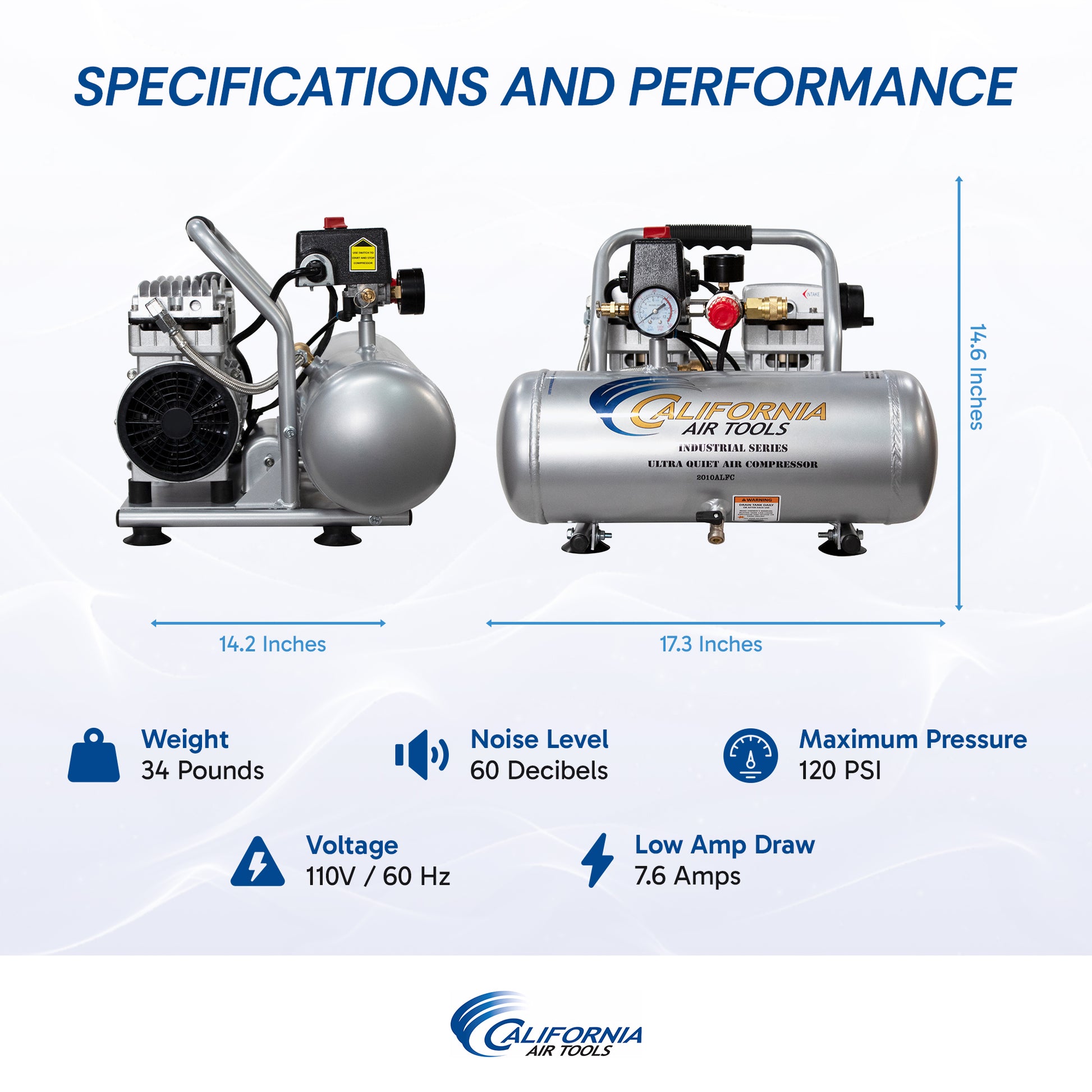 Enjoy powerful performance without the noise with the California Air Tools 2010ALFC Ultra Quiet Air Compressor. At just 60 decibels, it's ideal for indoor projects or anywhere quiet operation matters.