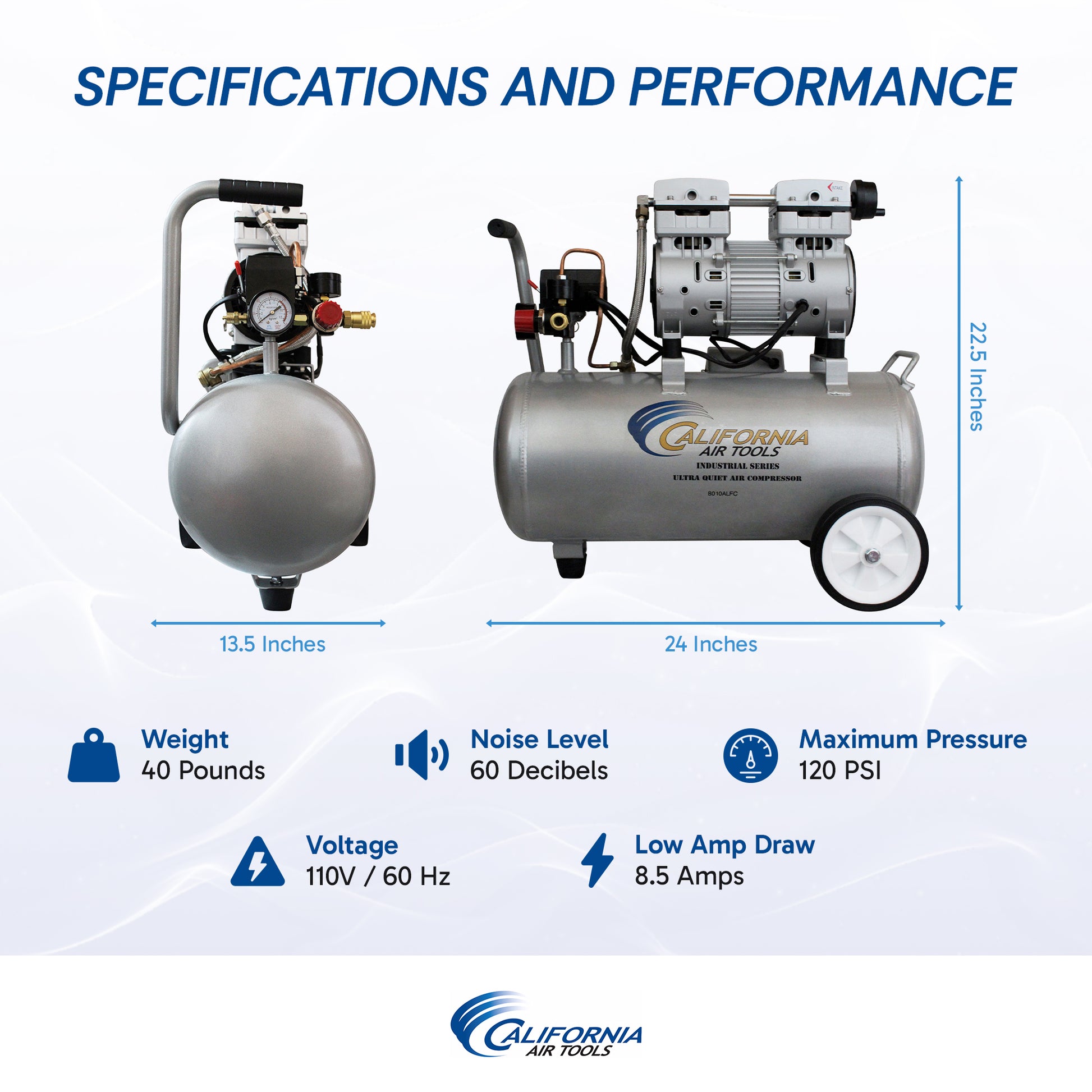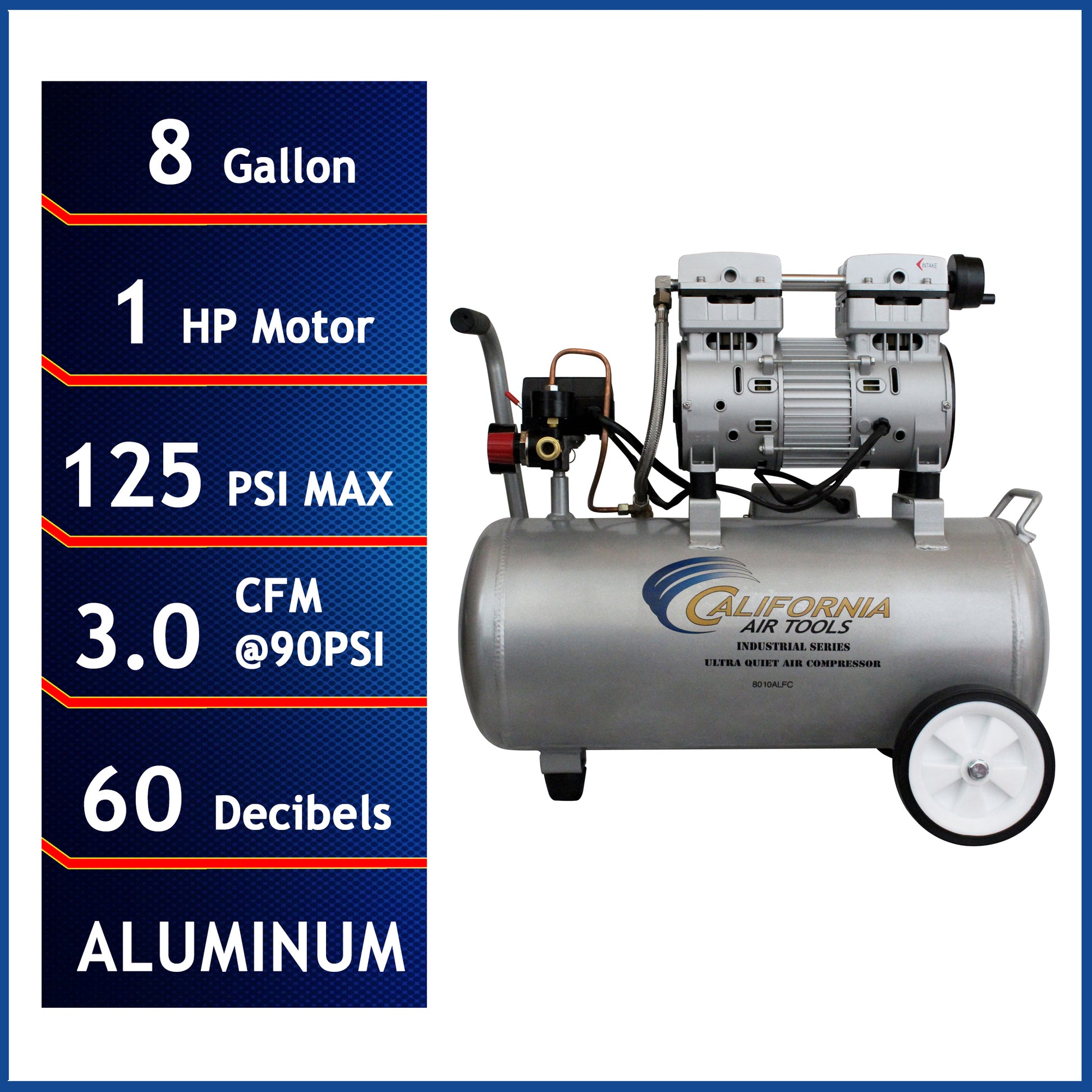 California Air Tools 1.0 Hp 8.0 Gal. Aluminum Tank Ultra Quiet & Oil-Free Air Compressor