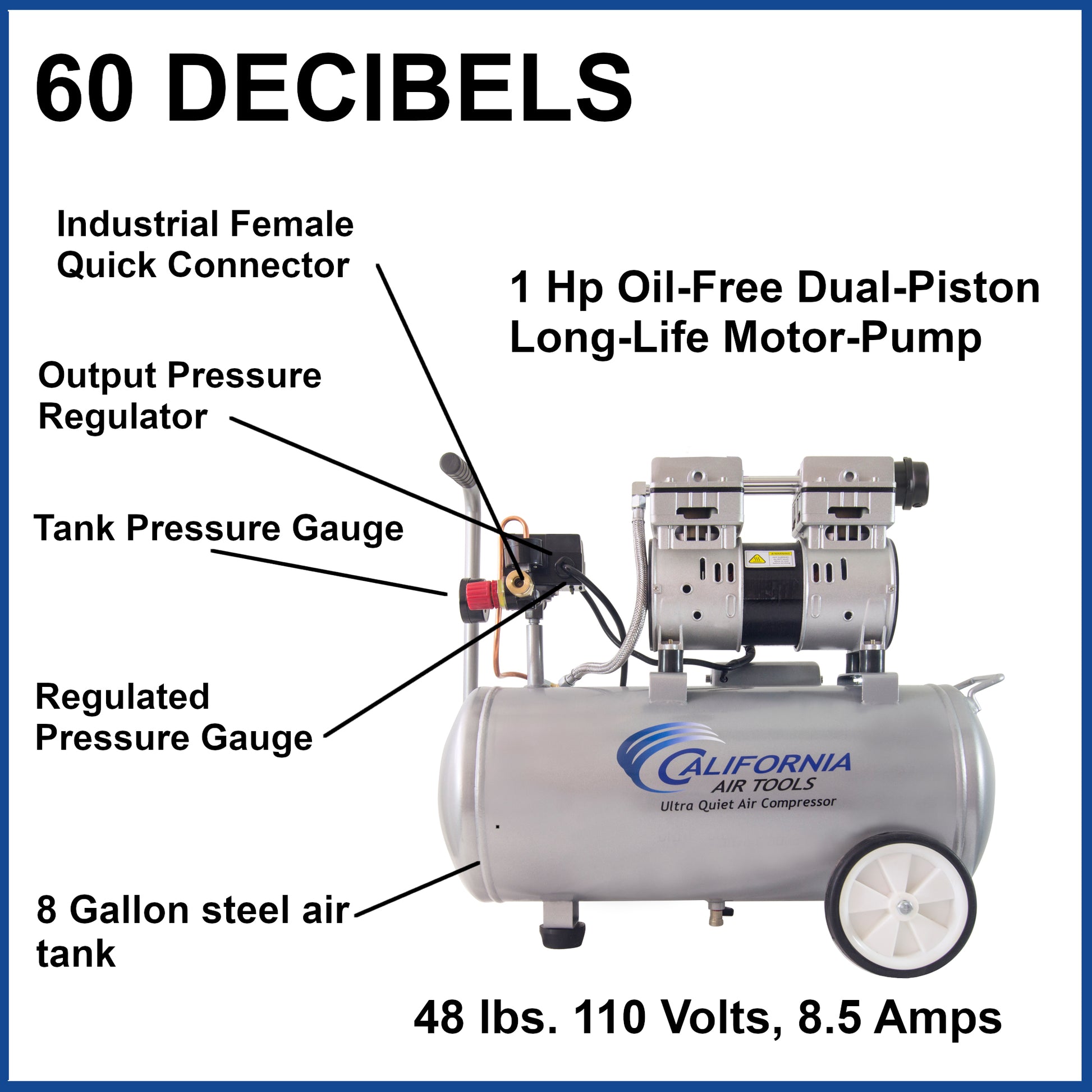 California Air Tools 1.0 Hp, 8.0 Gal. Steel Tank Ultra Quiet & Oil-Free Air Compressor