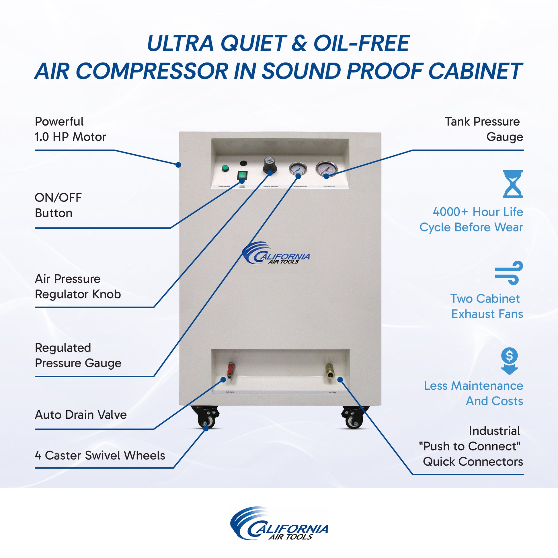 California Air Tools Ultra Quiet & Oil-Free 1.0 Hp 8.0 Gal. Steel Tank Air Compressor in Sound Proof Cabinet