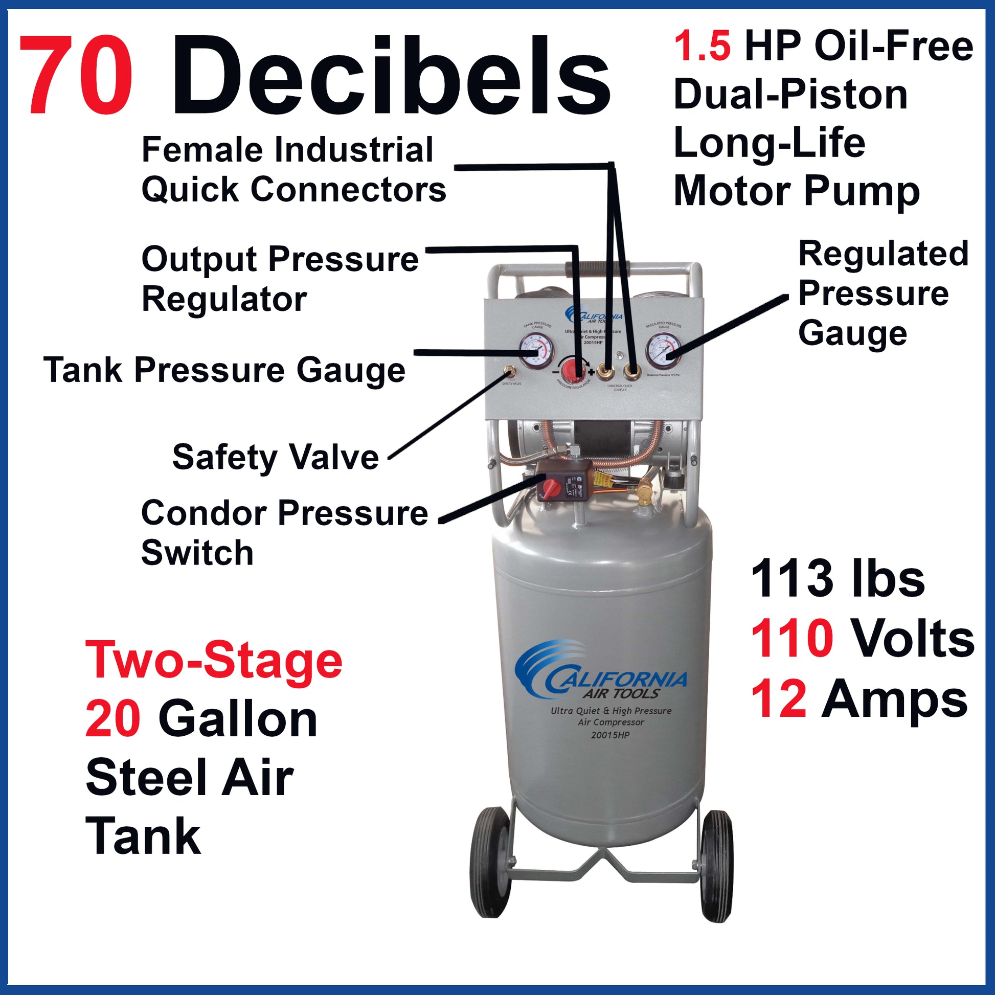 California Air Tools 1.5 Hp, 20 Gal. 175 PSI Two Stage Ultra Quiet & Oil-Free Air Compressor
