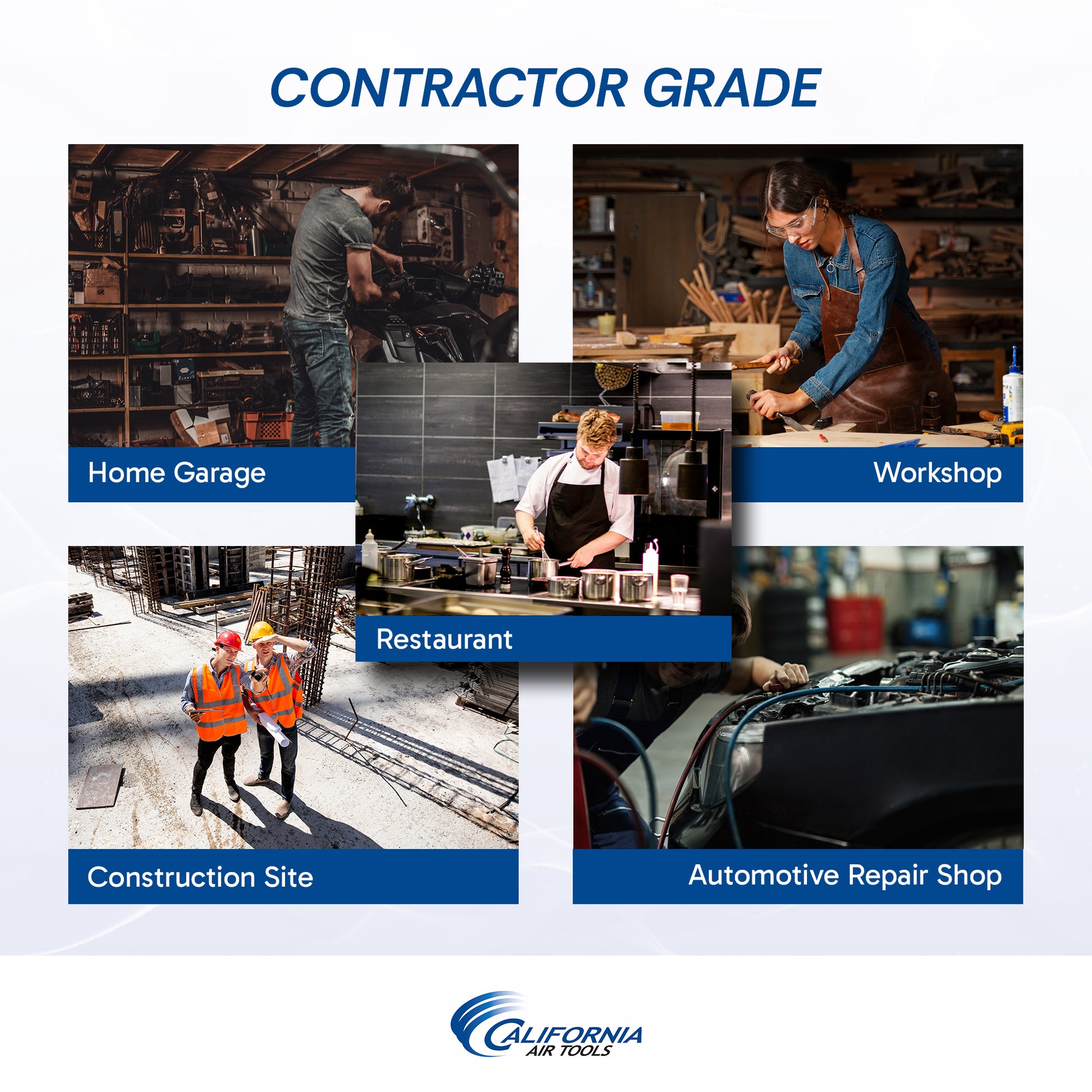 The California Air Tools 10020C-22060 delivers powerful performance with ultra-quiet operation (70 dB), perfect for home workshops, job sites, or garages. Its efficient 2.0 HP motor operates at just 1680 RPM, minimizing noise, vibration, and wear.