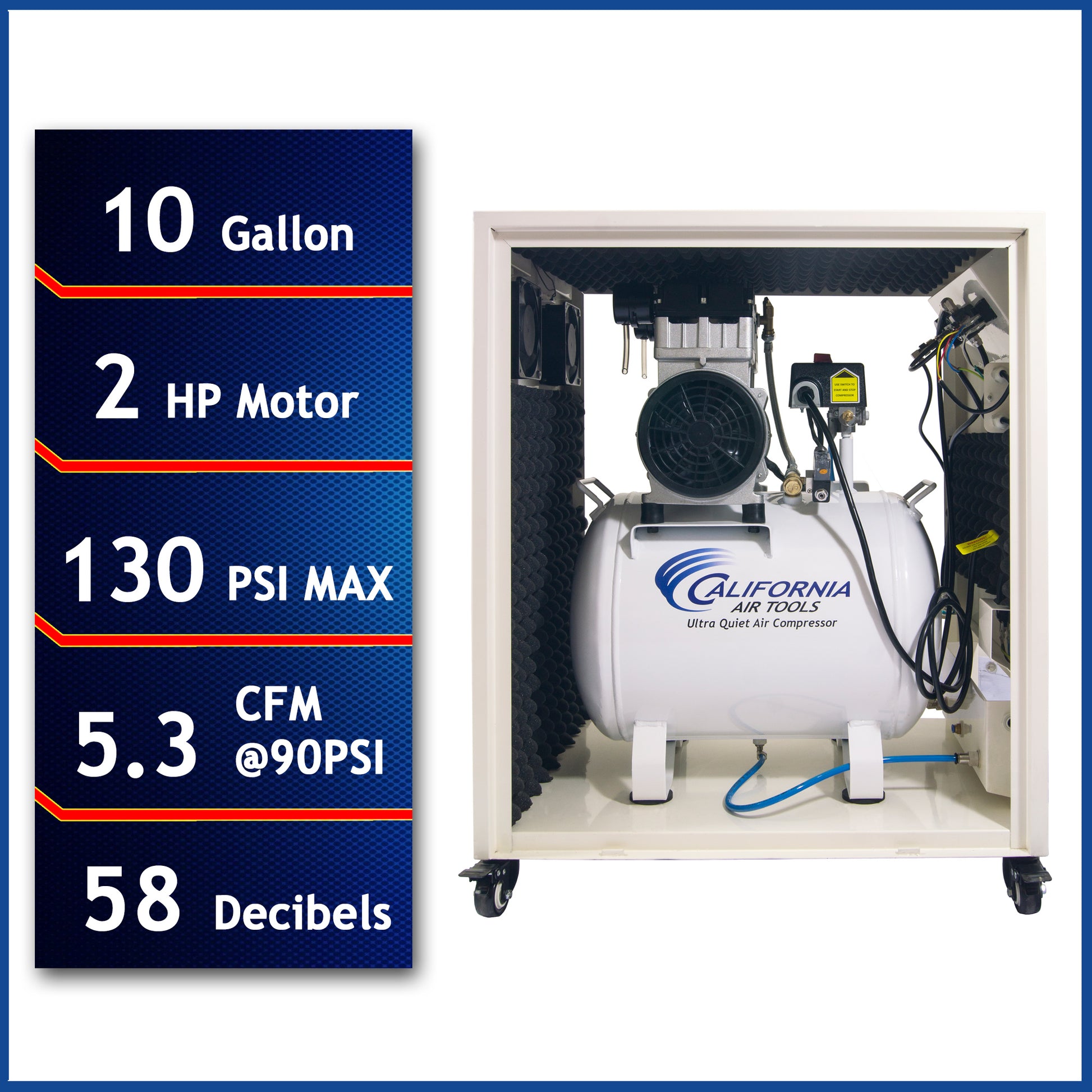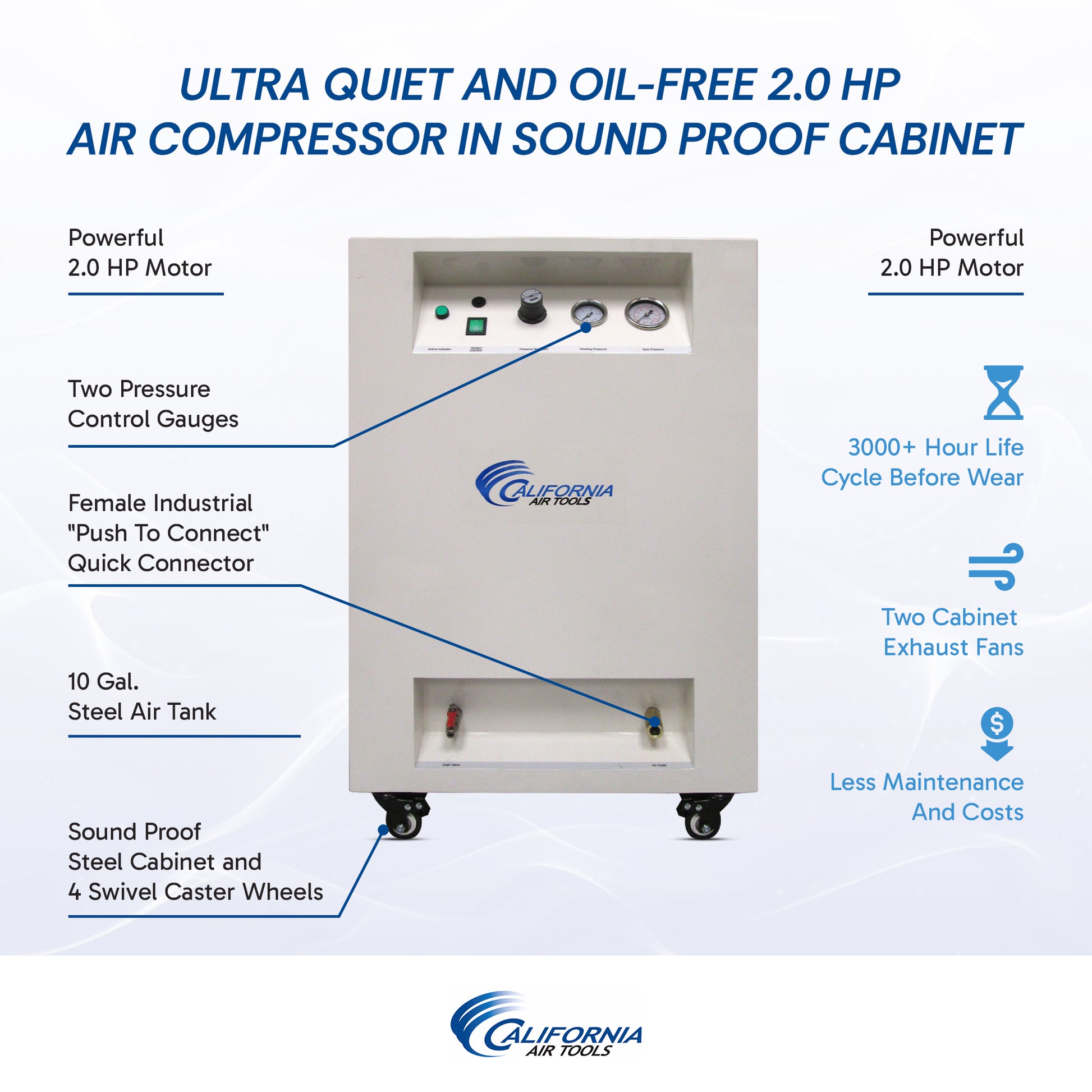California Air Tools 2.0 Hp 10.0 Gal. Steel Tank Ultra Quiet & Oil-Free Air Compressor in Sound Proof Cabinet