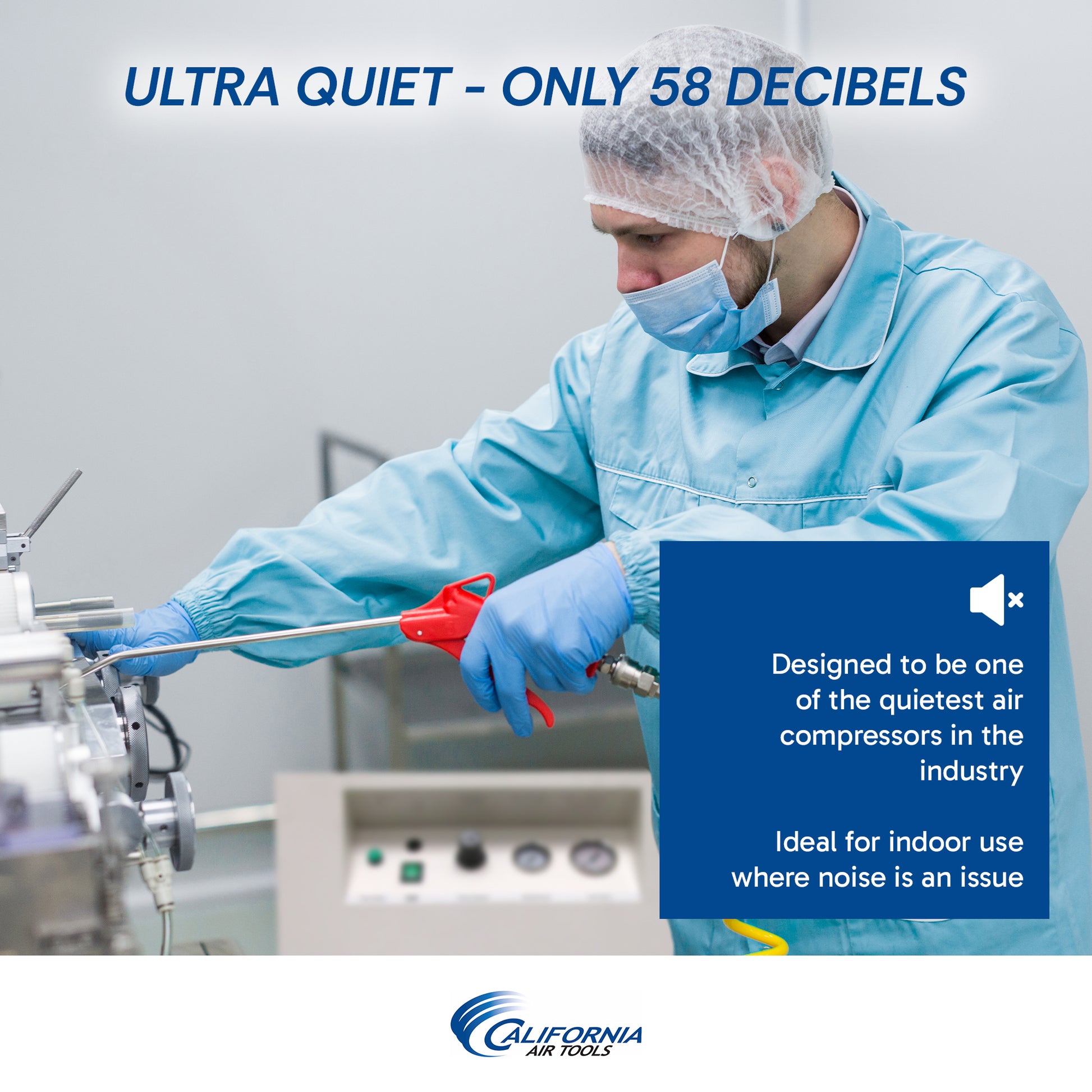 The California Air Tools 10020SPC offers ultra-quiet operation at just 58 decibels, ideal for homes, shops, or offices. The powerful 2.0 HP oil-free motor runs at only 1680 RPM, ensuring less noise, lower vibration, and longer life.