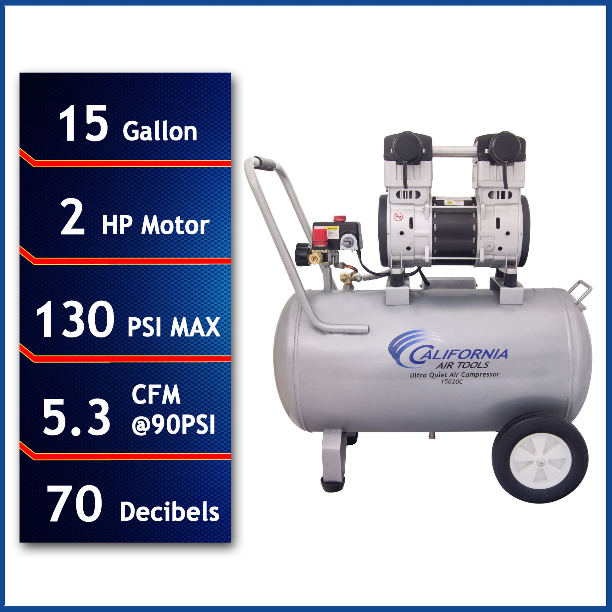 California Air Tools 2.0 Hp, 15.0 Gal. Steel Tank Ultra Quiet & Oil-Free Air Compressor