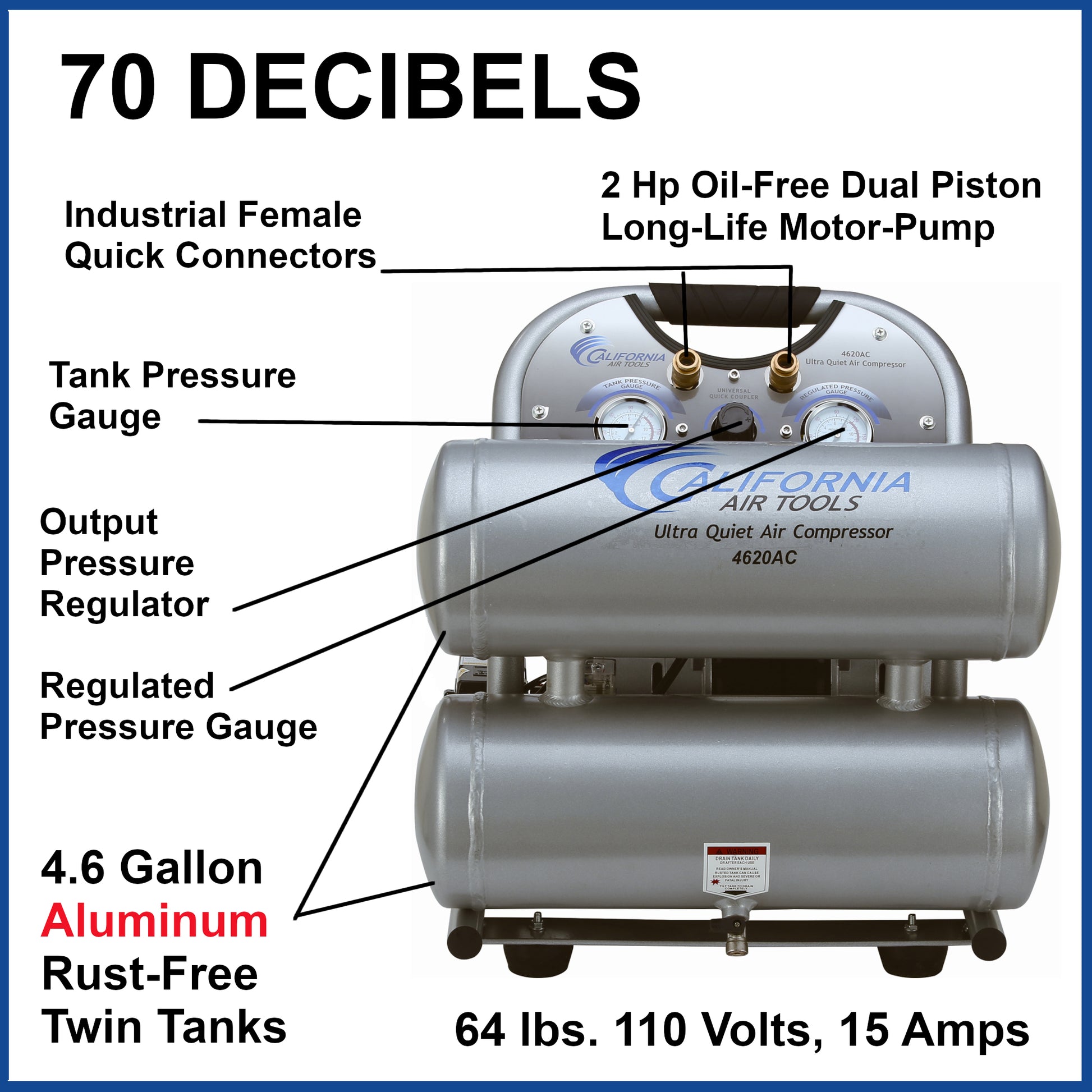 California Air Tools 2.0 Hp, 4.0 Gal. Aluminum Twin Tank Ultra Quiet & Oil-Free Air Compressor
