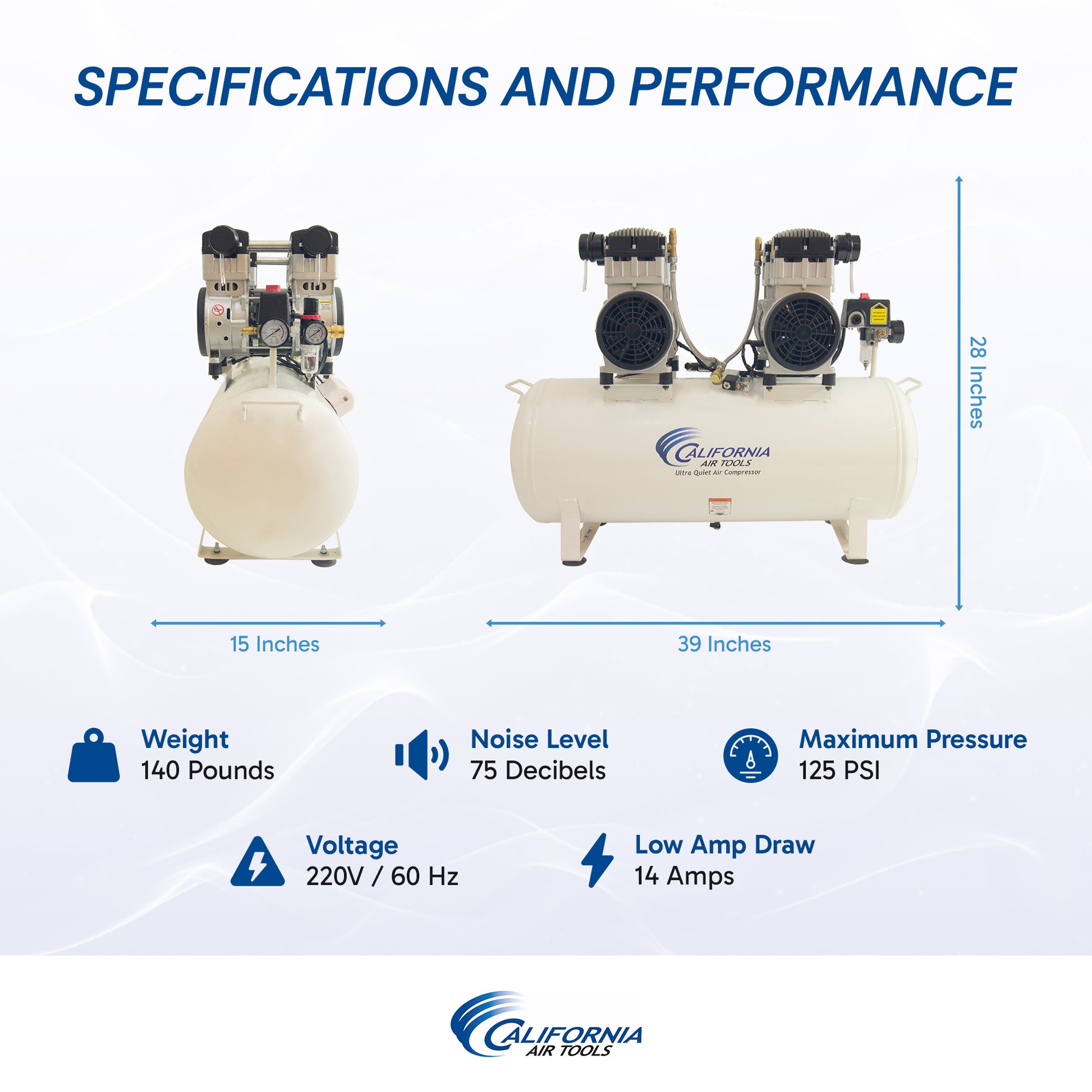The California Air Tools 20040C delivers powerful airflow (10.60 CFM @ 90 PSI and 12.80 CFM @ 40 PSI) with ultra-quiet operation (75 dB), perfect for professional shops or home garages. Two efficient 2.0 HP motors run at just 1680 RPM, minimizing noise, vibration, and wear.