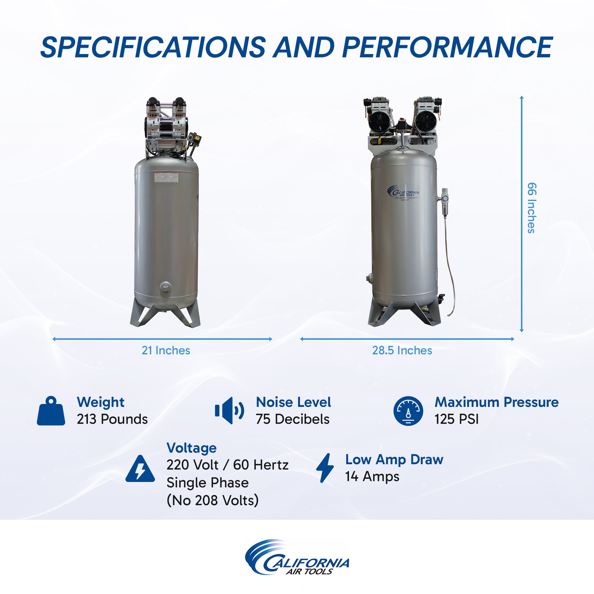 California Air Tools 4.0 Hp, 60.0 Gal. Steel Tank Ultra Quiet & Oil-Free Air Compressor Automatic Drain Valve