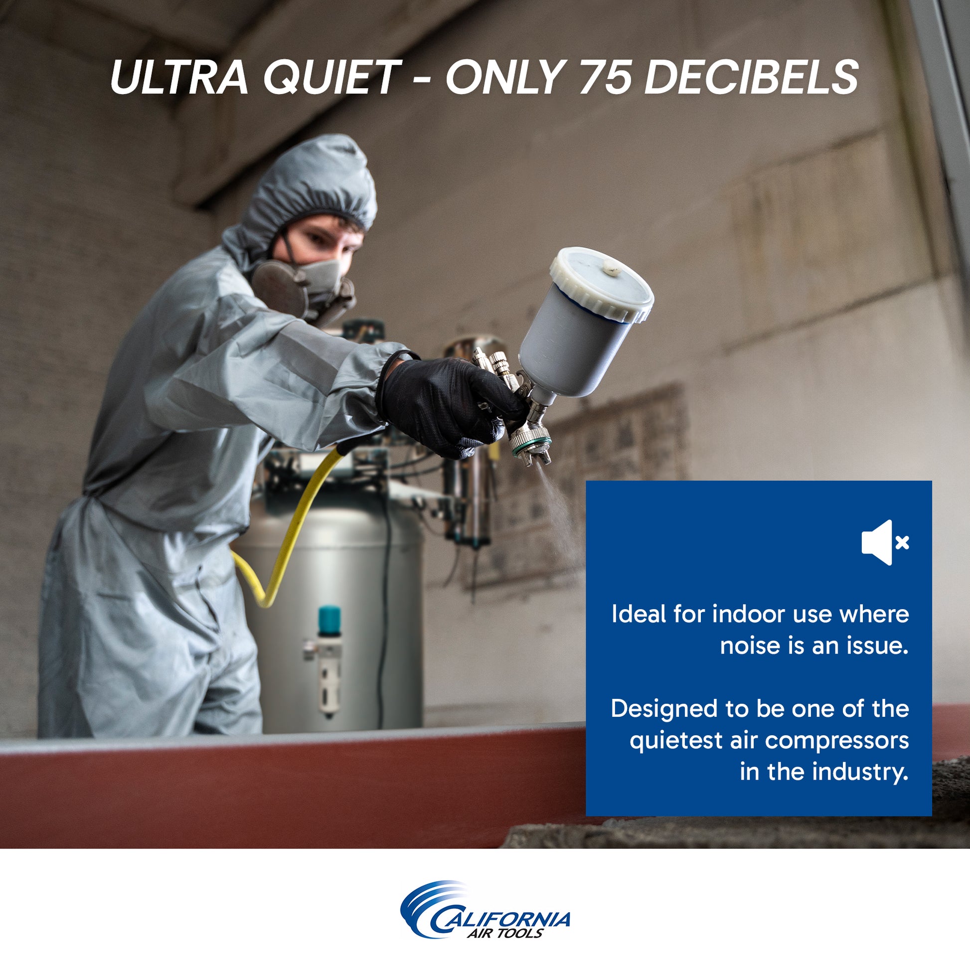 The California Air Tools 60040DCAD combines powerful performance (10.60 CFM @ 90 PSI, 12.80 CFM @ 40 PSI) and ultra-quiet operation (75 dB), perfect for workshops and garages. Featuring two efficient 2.0 HP motors running at just 1680 RPM, this compressor reduces noise, vibration, and wear significantly.