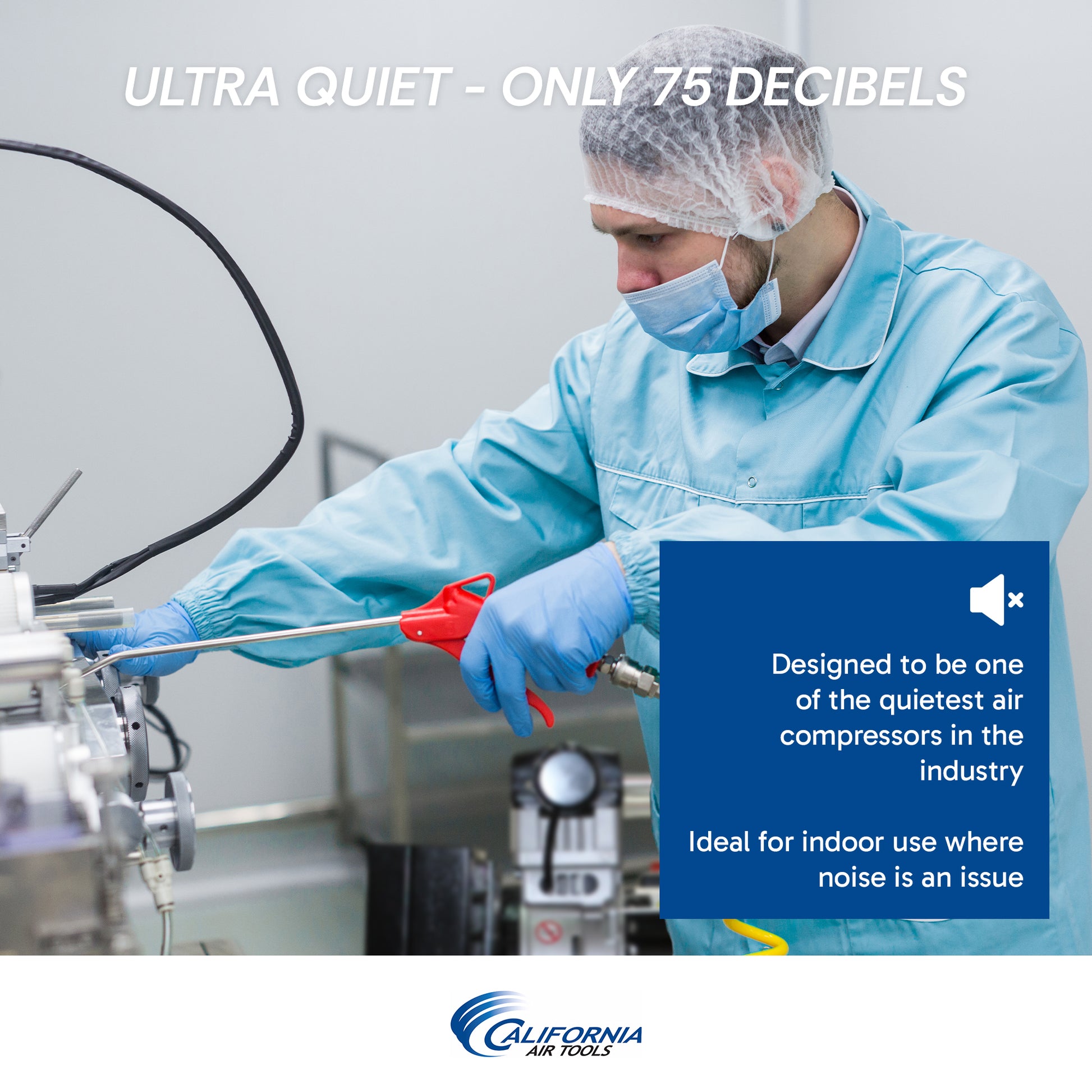 The California Air Tools 20040DCADC combines powerful, ultra-quiet (75 dB) operation with advanced air drying technology—ideal for sensitive equipment in workshops or garages. With two efficient 2.0 HP motors operating at only 1680 RPM, it significantly reduces noise and wear.
